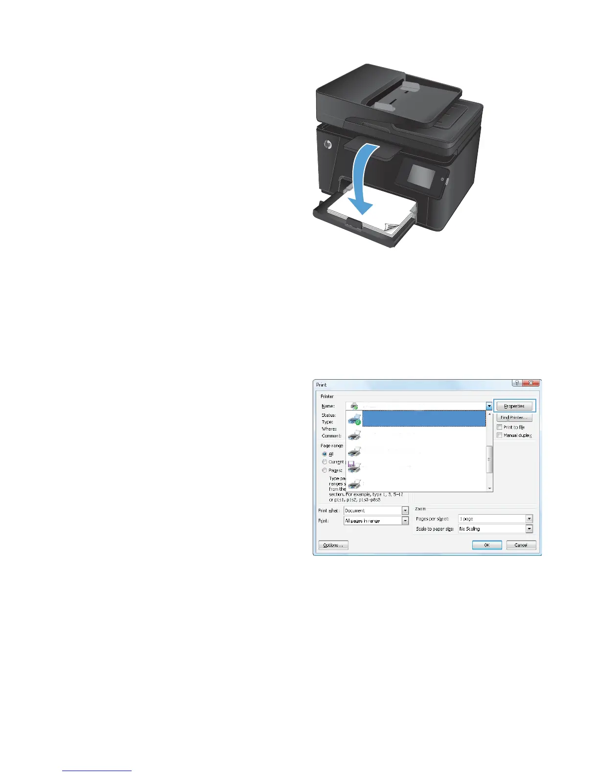 tap the Properties or Preferences button to open the print