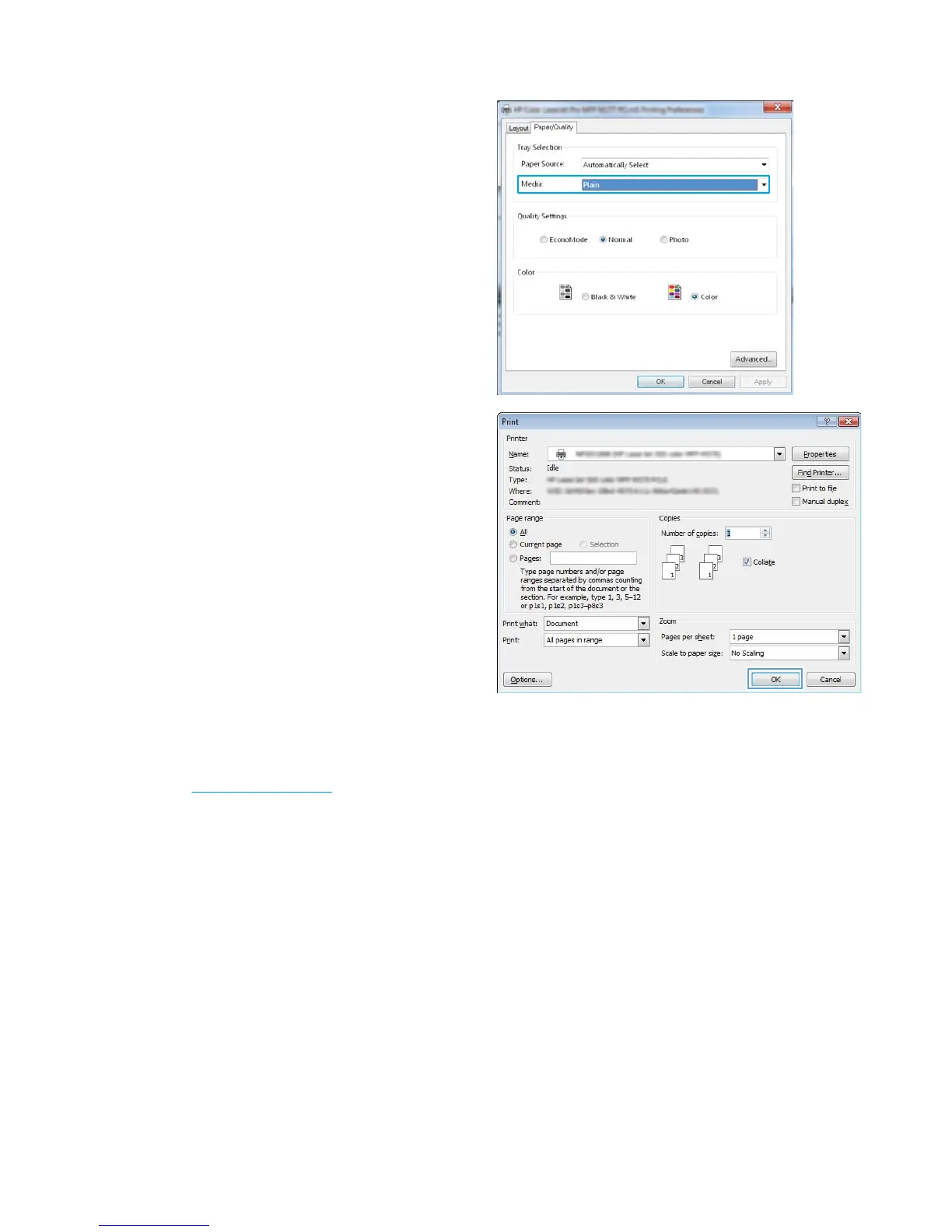 5. In the Print dialog box, click the OK button to print the job.