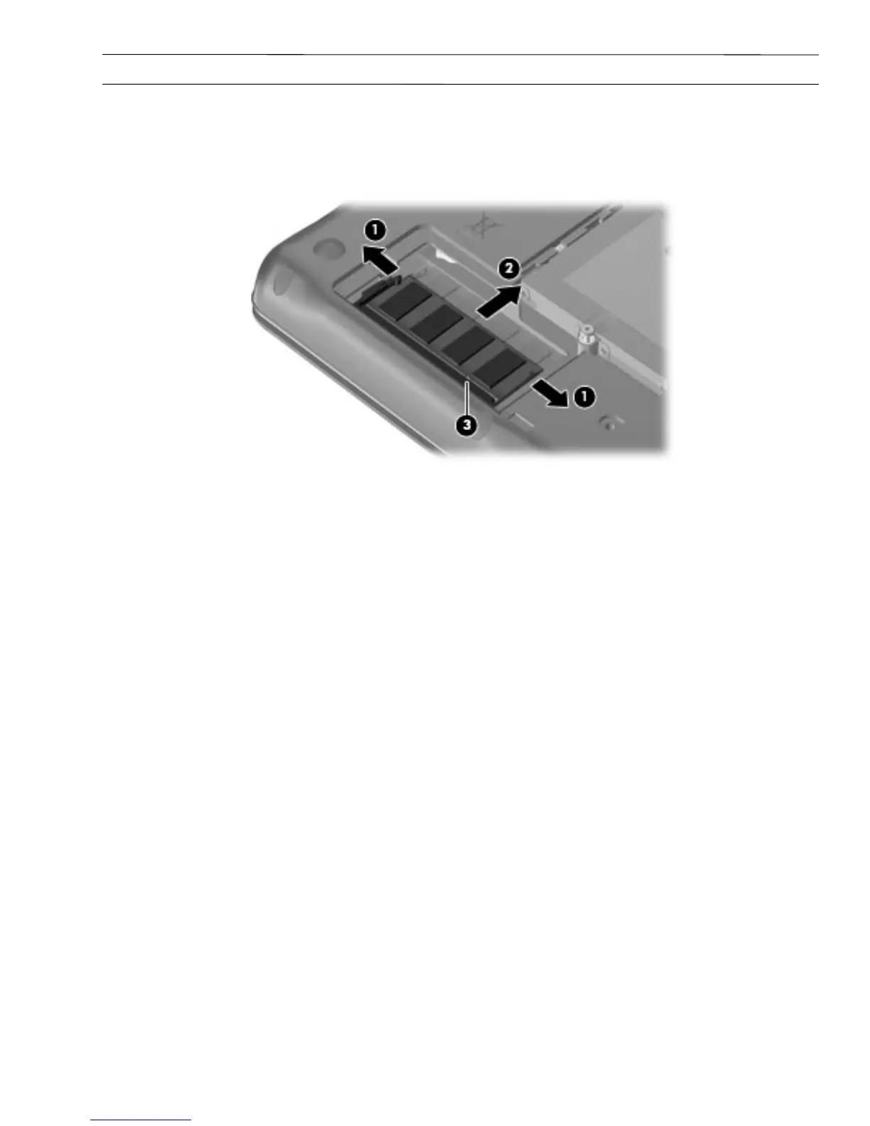 5. Remove the memory module 2 by pulling the module away from the slot at an angle.