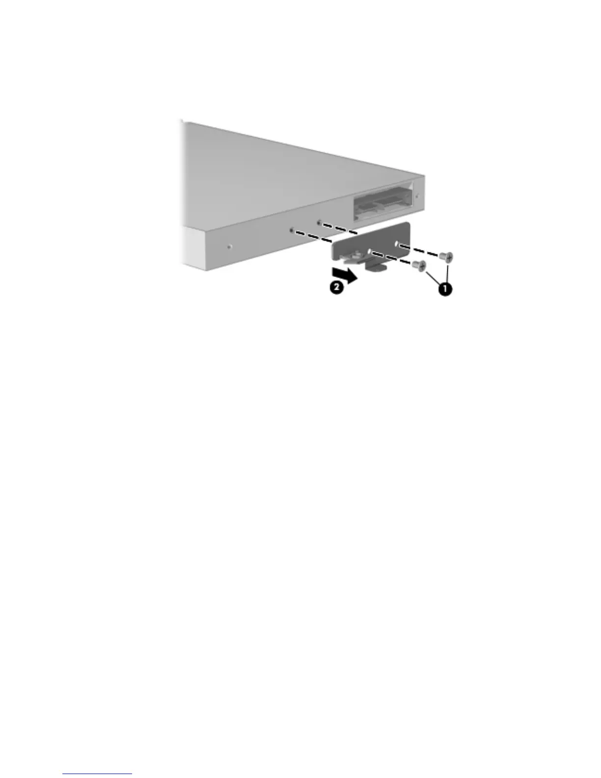 b. Remove the two Phillips PM1.5×3.0 screws 1 that secure the optical drive bracket to the optical drive.