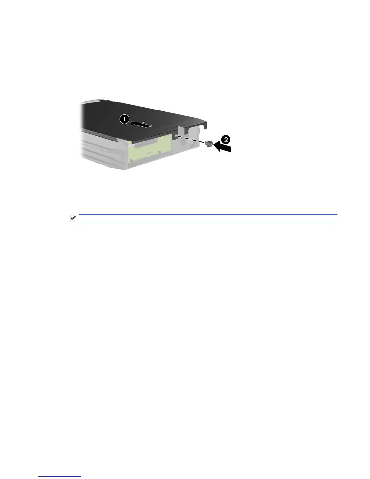 9. Slide the cover on the carrier (1) and replace the screw on the rear of the carrier to secure the cover