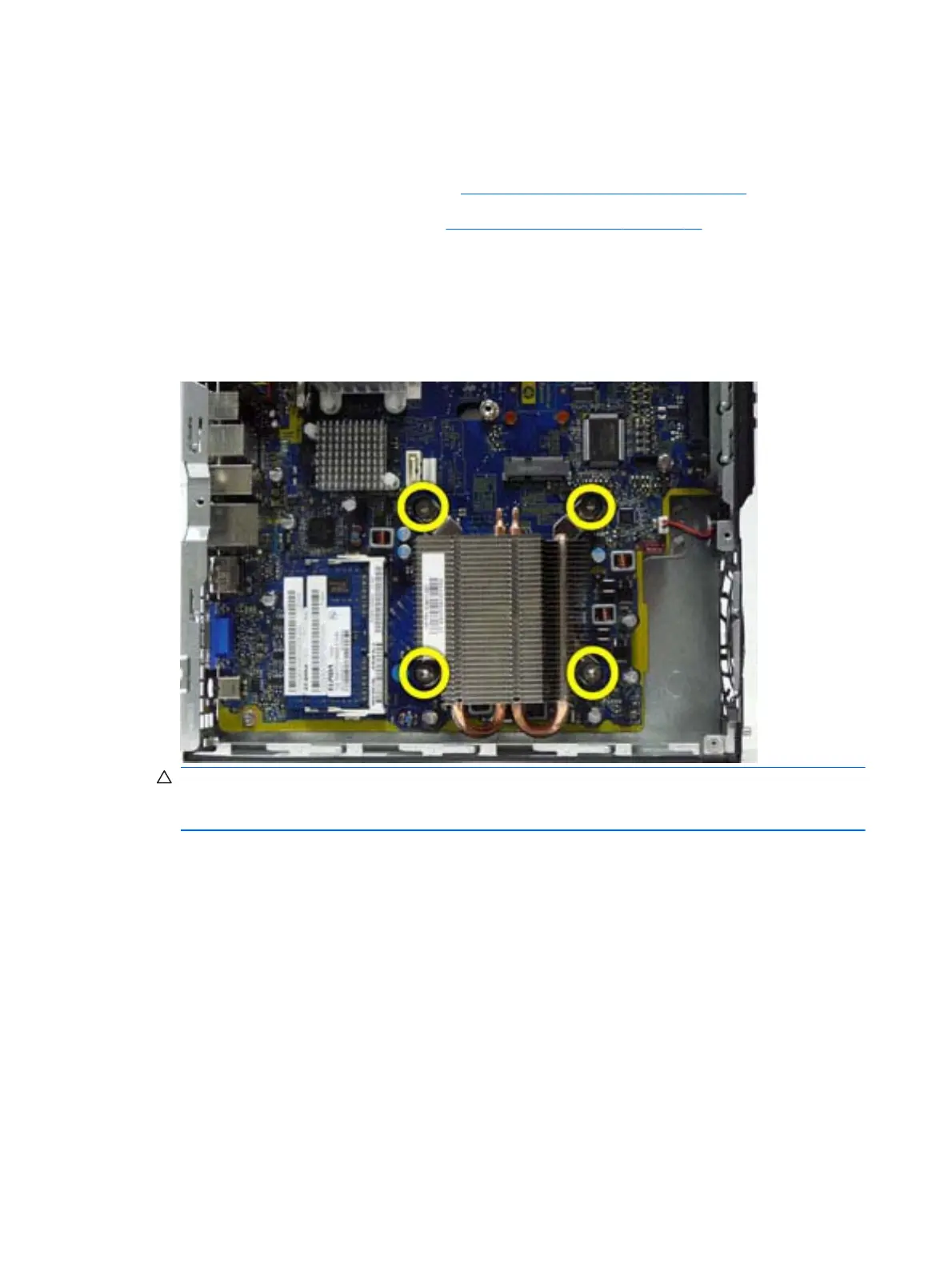 CAUTION: Heat sink retaining screws should be removed in diagonally opposite pairs (as in