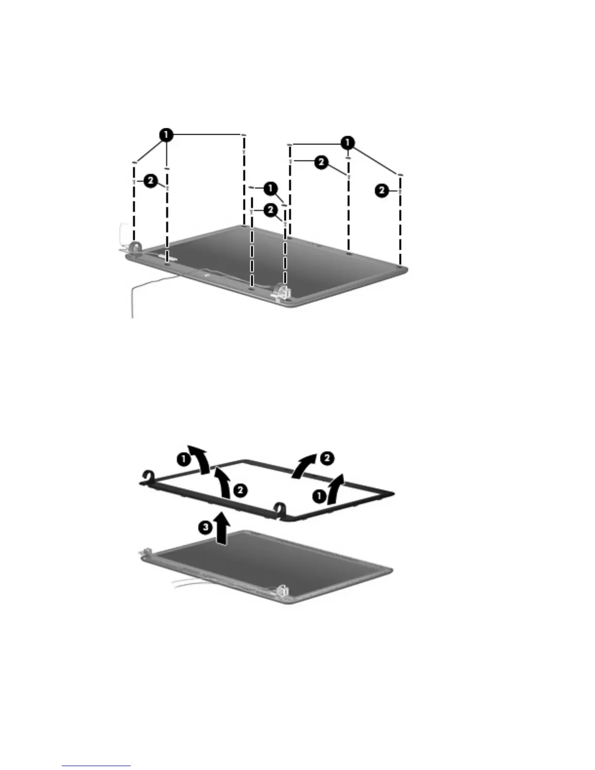 2. If it is necessary to replace the display bezel, display inverter, or display hinges, remove the eight