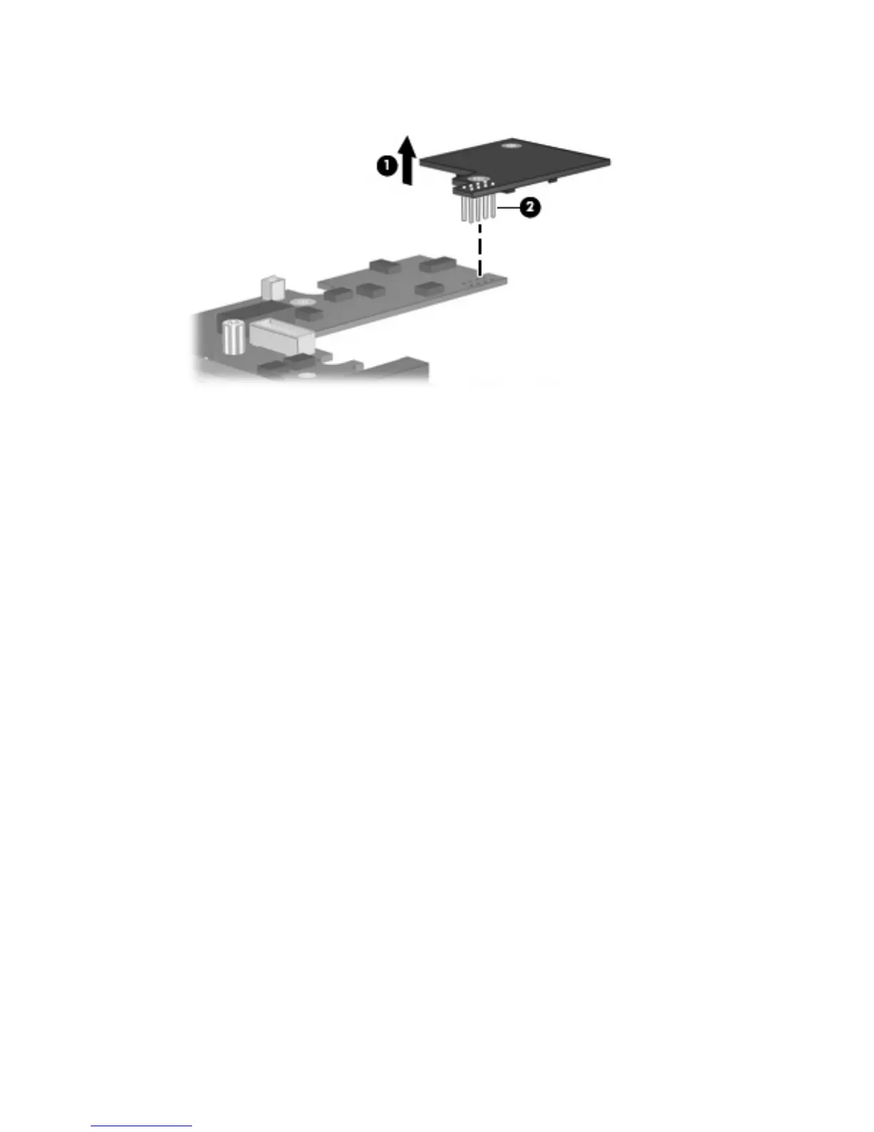 2. Lift the SIM slot board (1) straight up and remove it, making note of the location of the pins (2) on