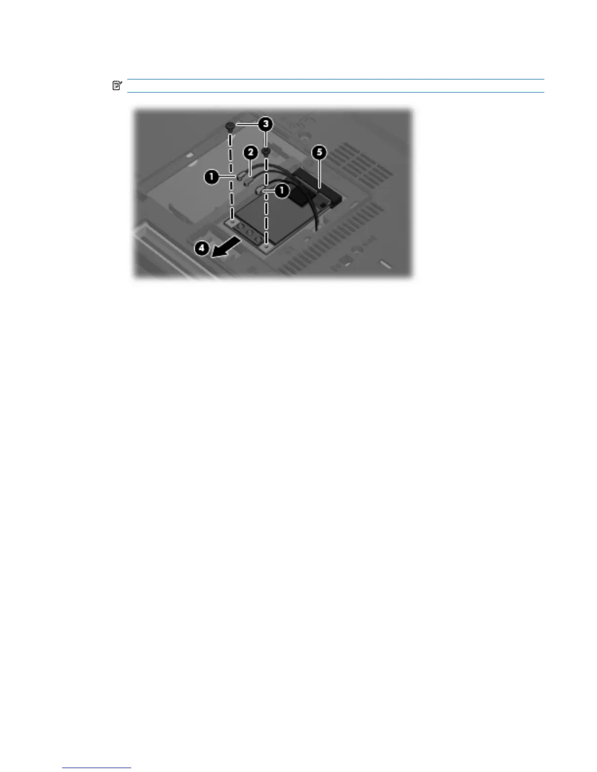 NOTE: WLAN modules are designed with a notch (5) to prevent incorrect installation.