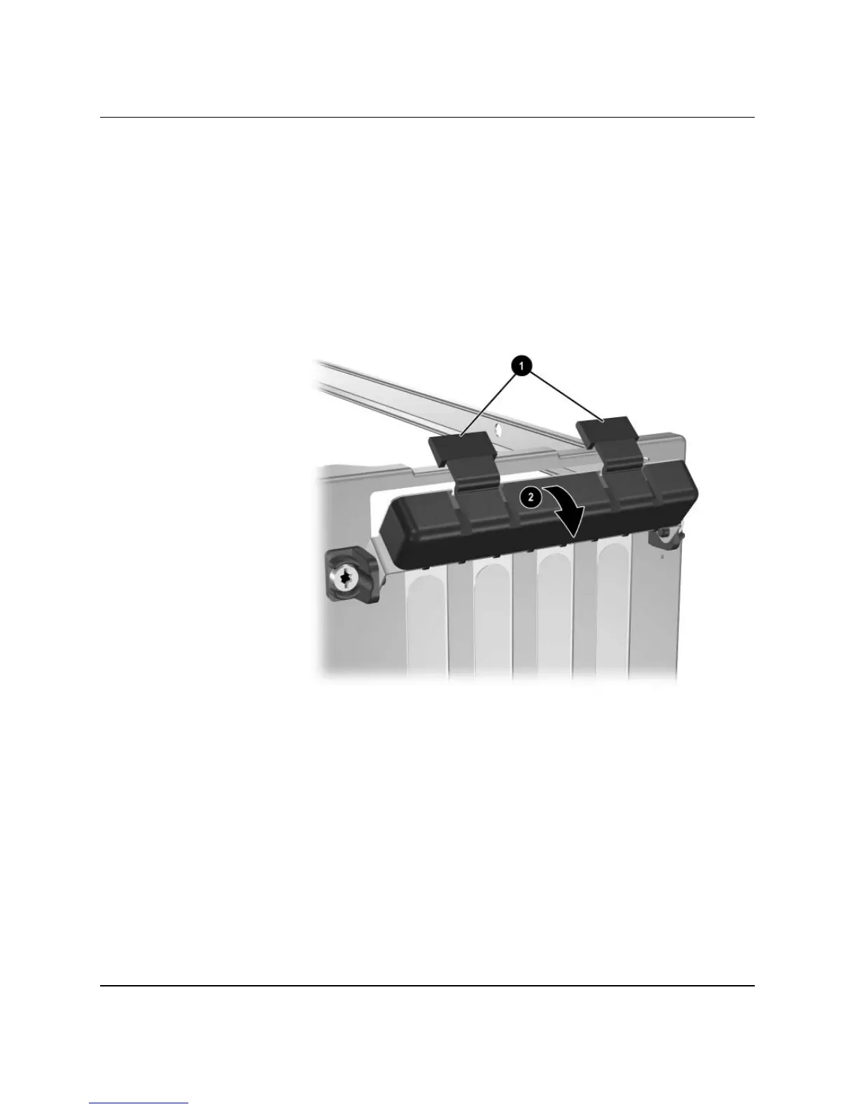 thumb tabs 1 then rotating the bracket away from the chassis 2.