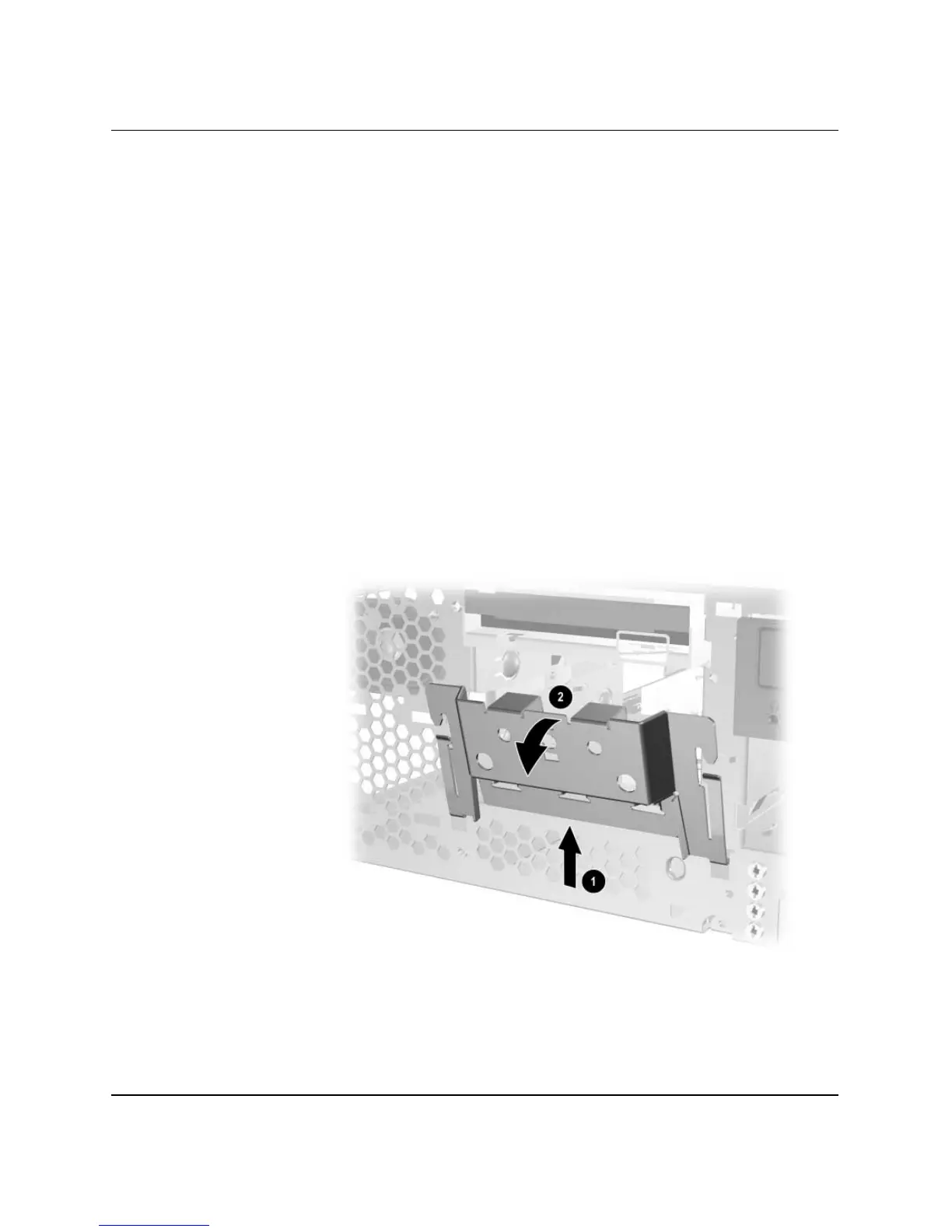6. If removing a hard drive, lift up on the hard drive bracket 1, then