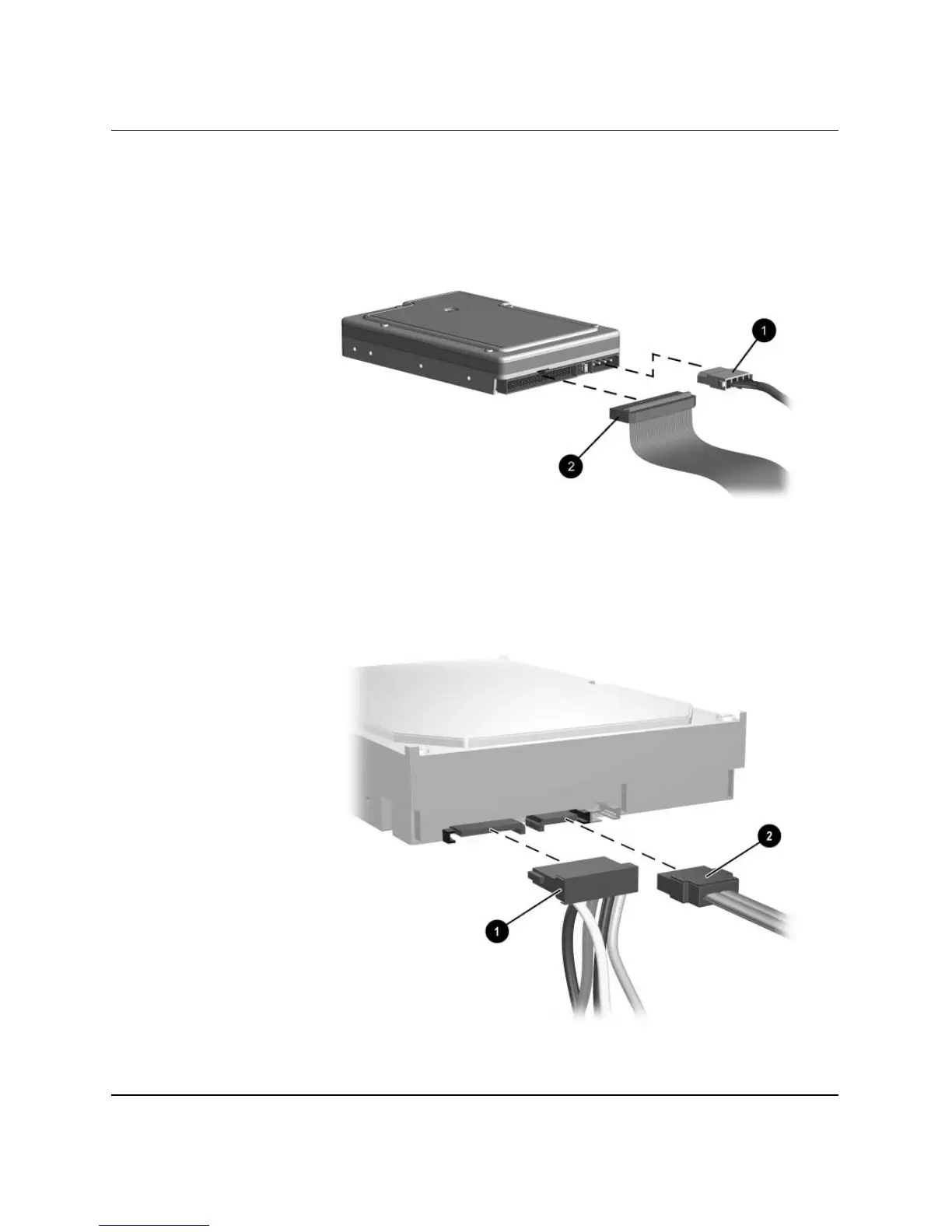 8. Connect the power cable 1 and data cable 2 to the hard drive.