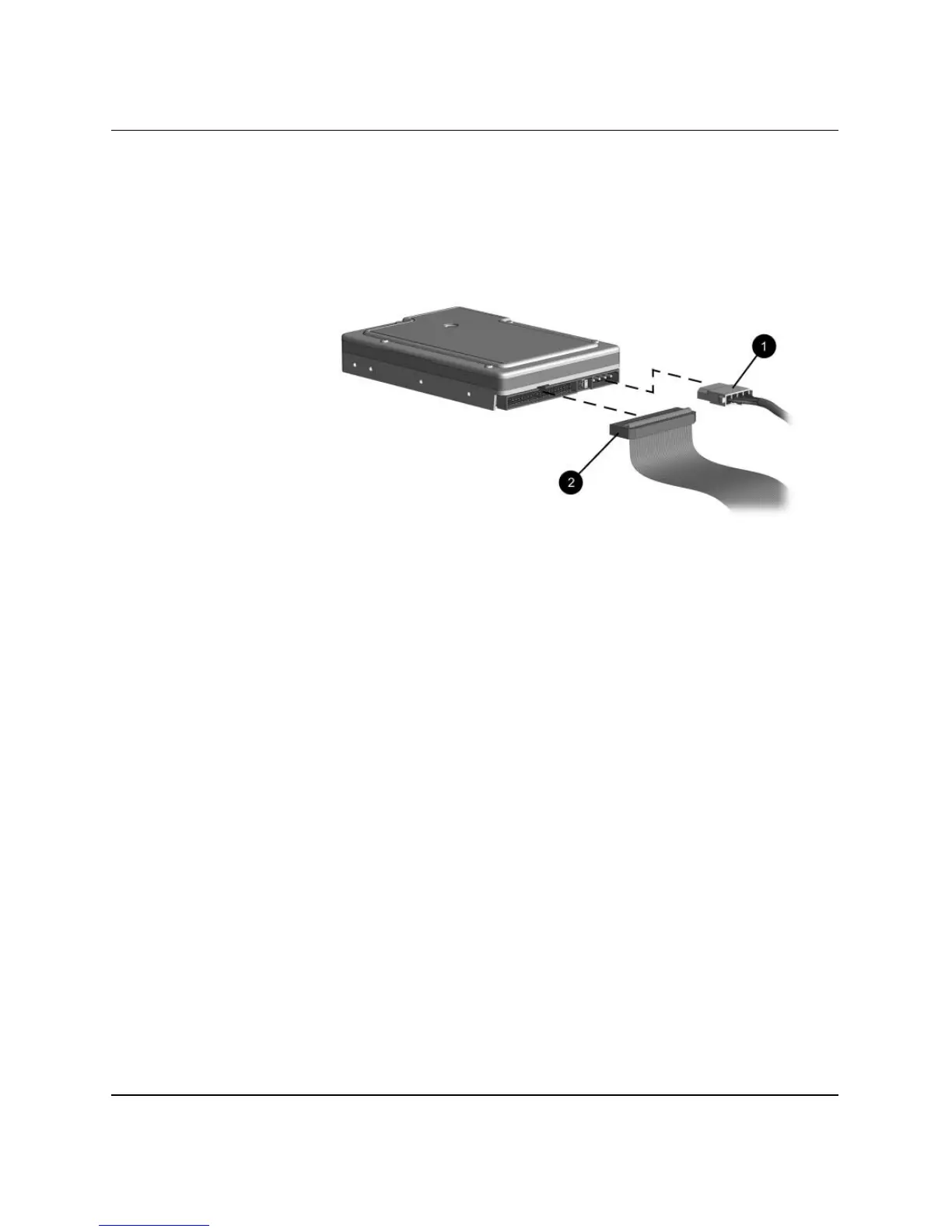 10. Connect the power cable 1 and data cable 2 to the hard drive.