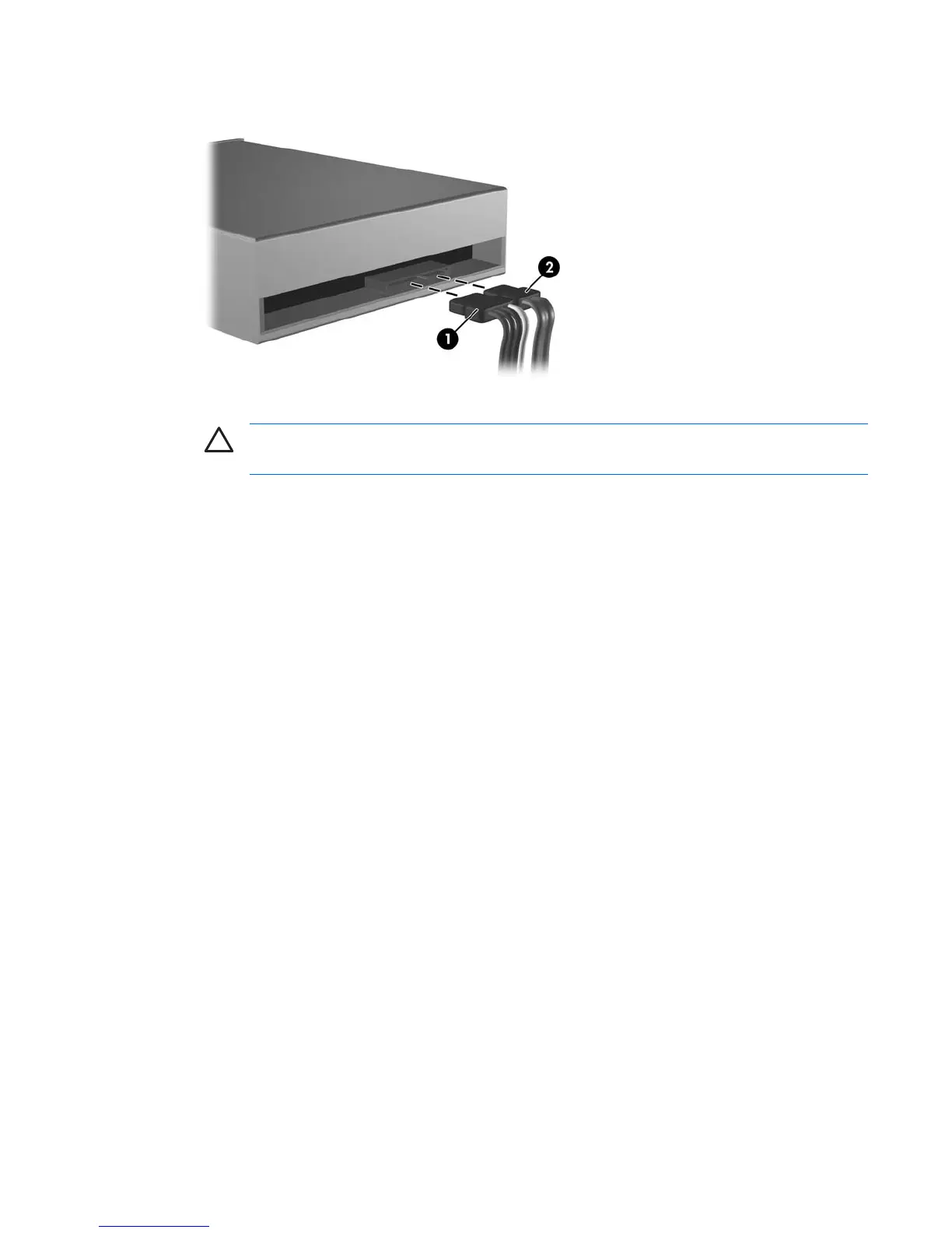 10. Connect the power cable (1) and data cable (2) to the rear of the optical drive.