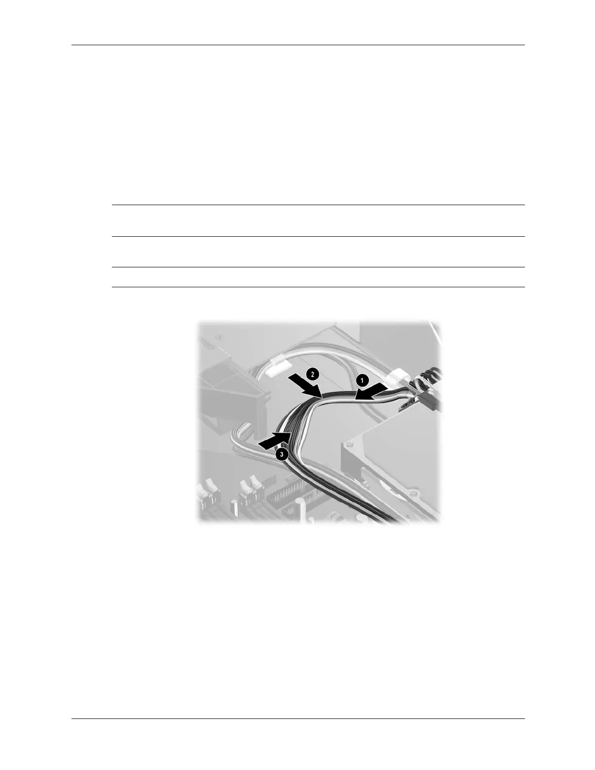 6. Remove the power supply cable that is routed under the green leg of the drive cage 3.