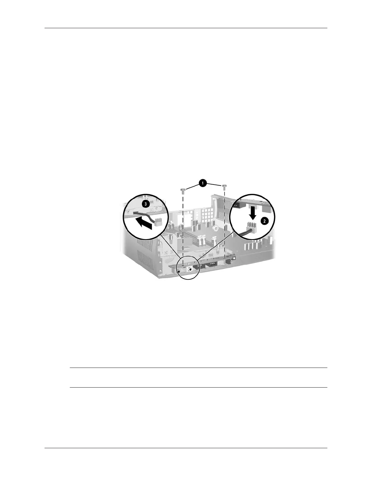 1. Thread the audio cable through the tunnel in the chassis and attach it to the front I/O board.