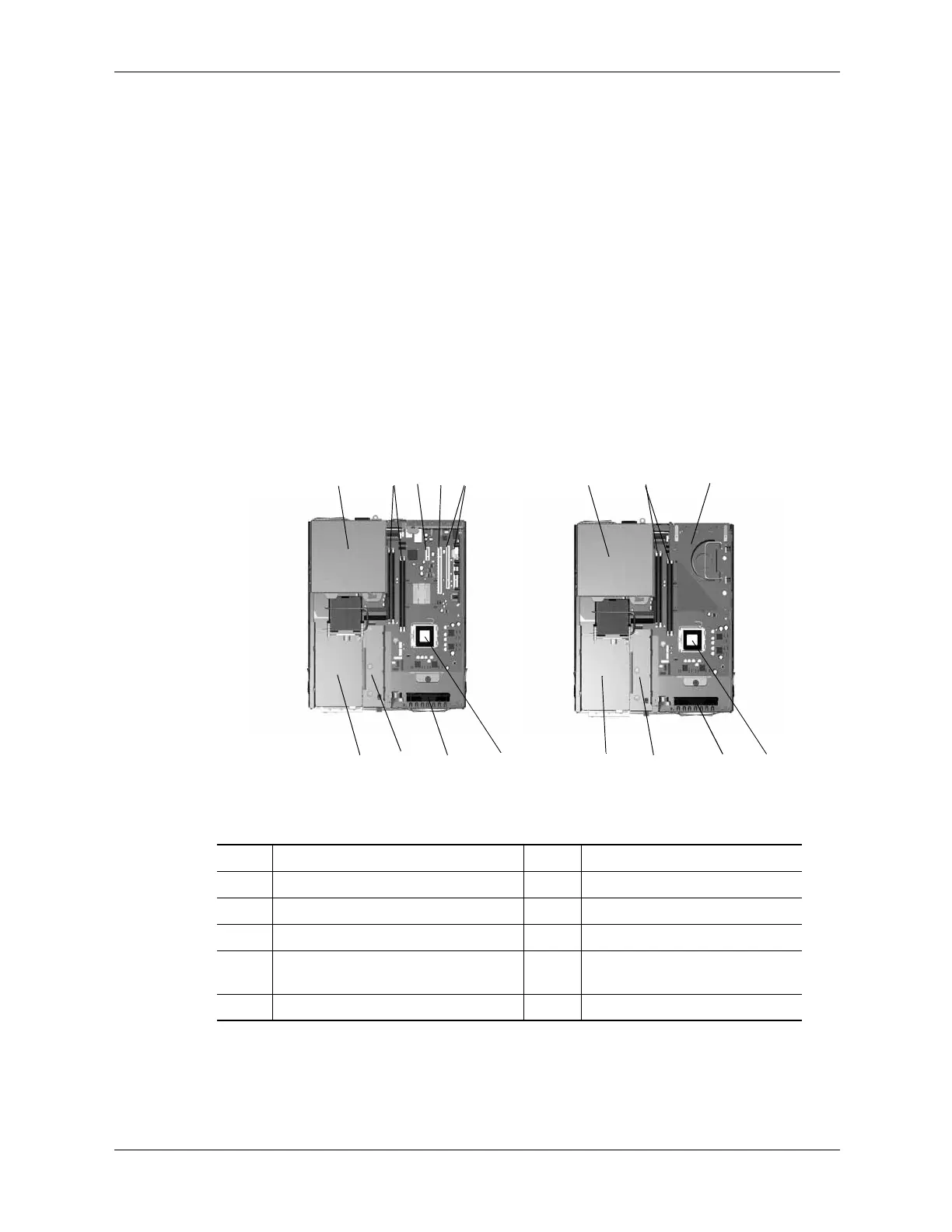 The chassis layouts for the Small Form Factor (SFF) used for the HP Compaq dc7600 models
