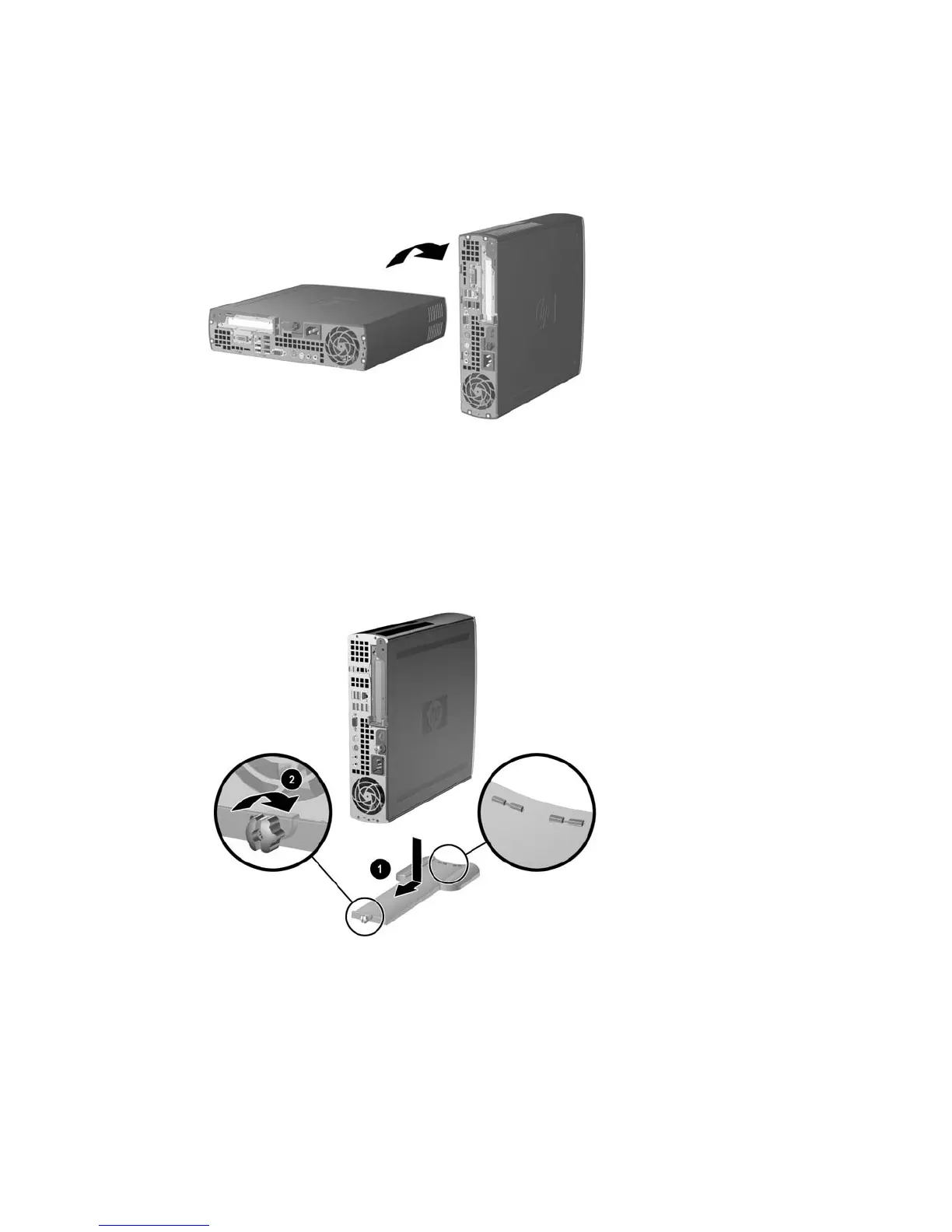 4. Rotate the computer into the tower position with the fan on the bottom and the expansion slot on