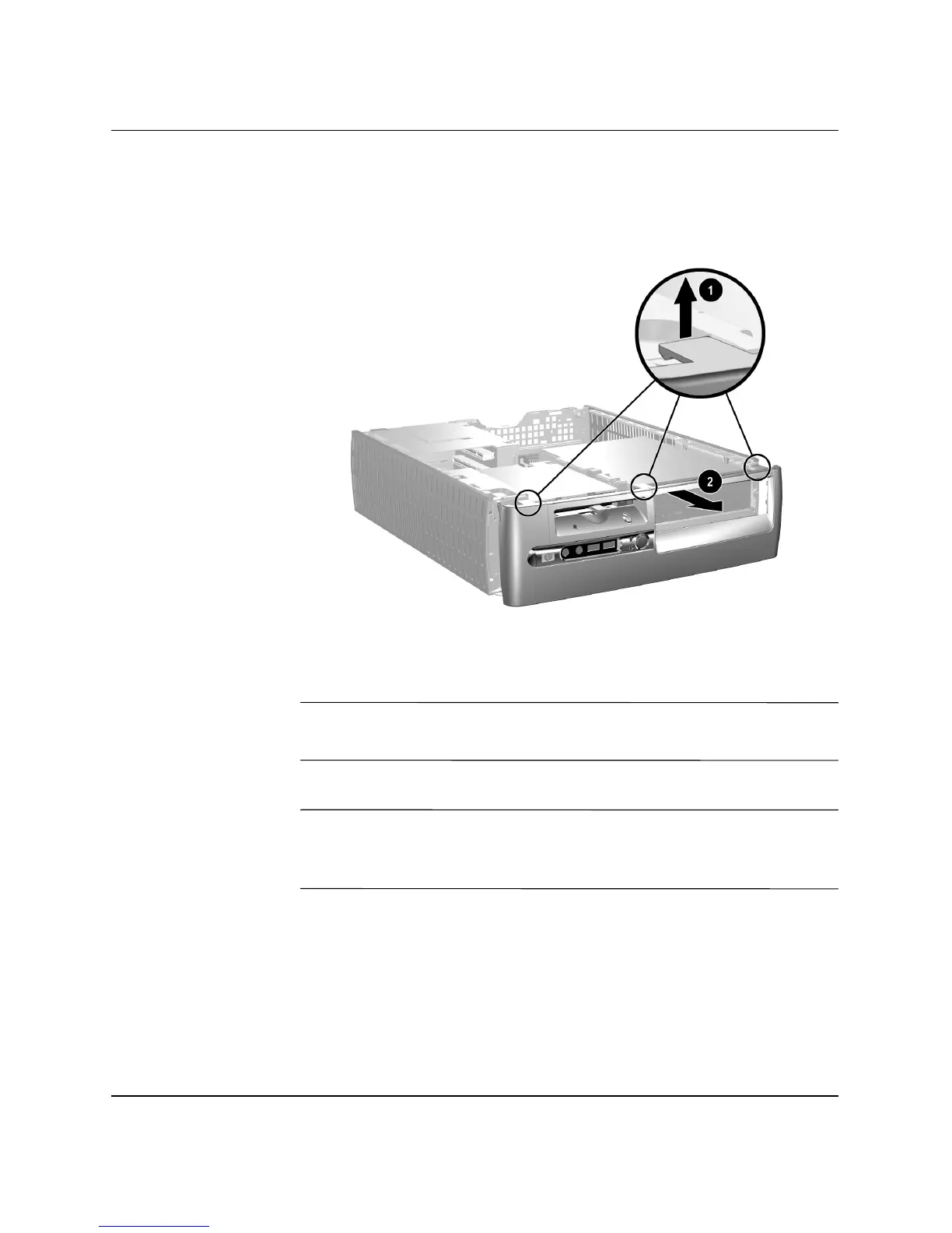 4. To remove the front bezel, gently pull up all three tabs 1 on the