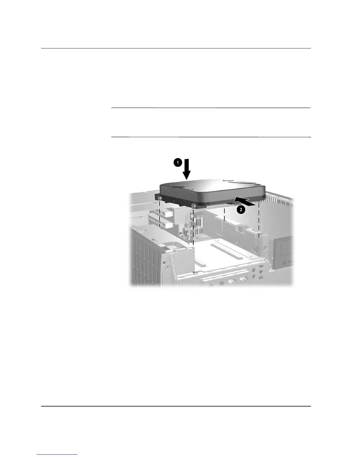 5. Insert the rear screws of the hard drive 1 into the rear J-slots.