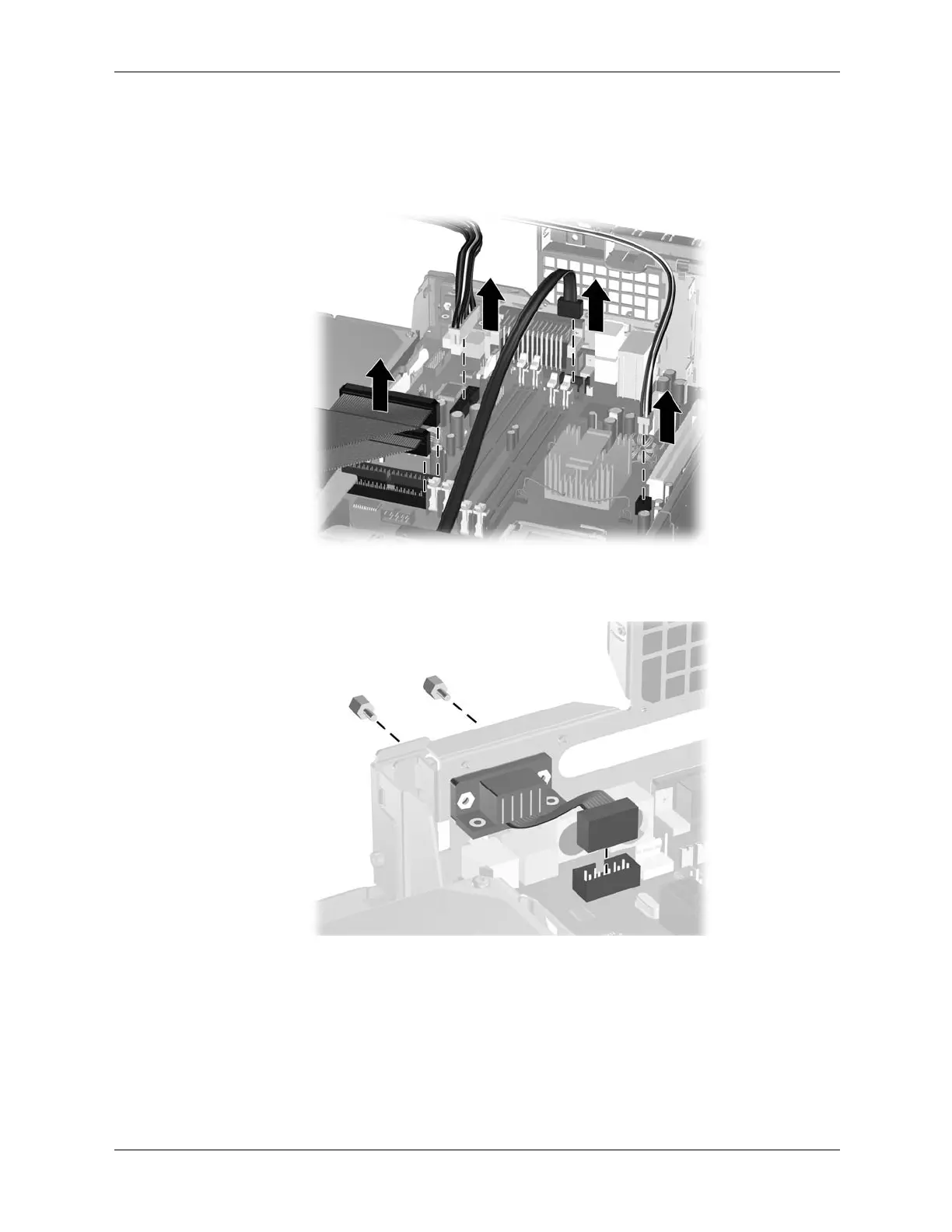 9. Disconnect the “Serial A” cable from the system board, remove the two screws that secure