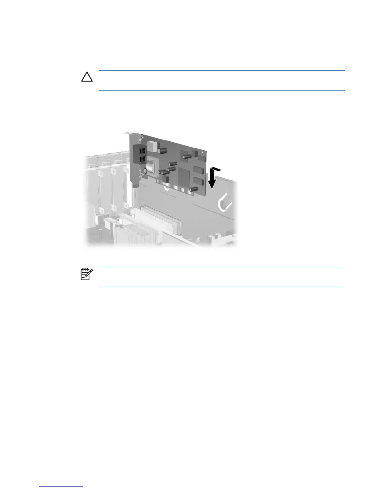 NOTE When installing an expansion card, press firmly on the card so that the whole