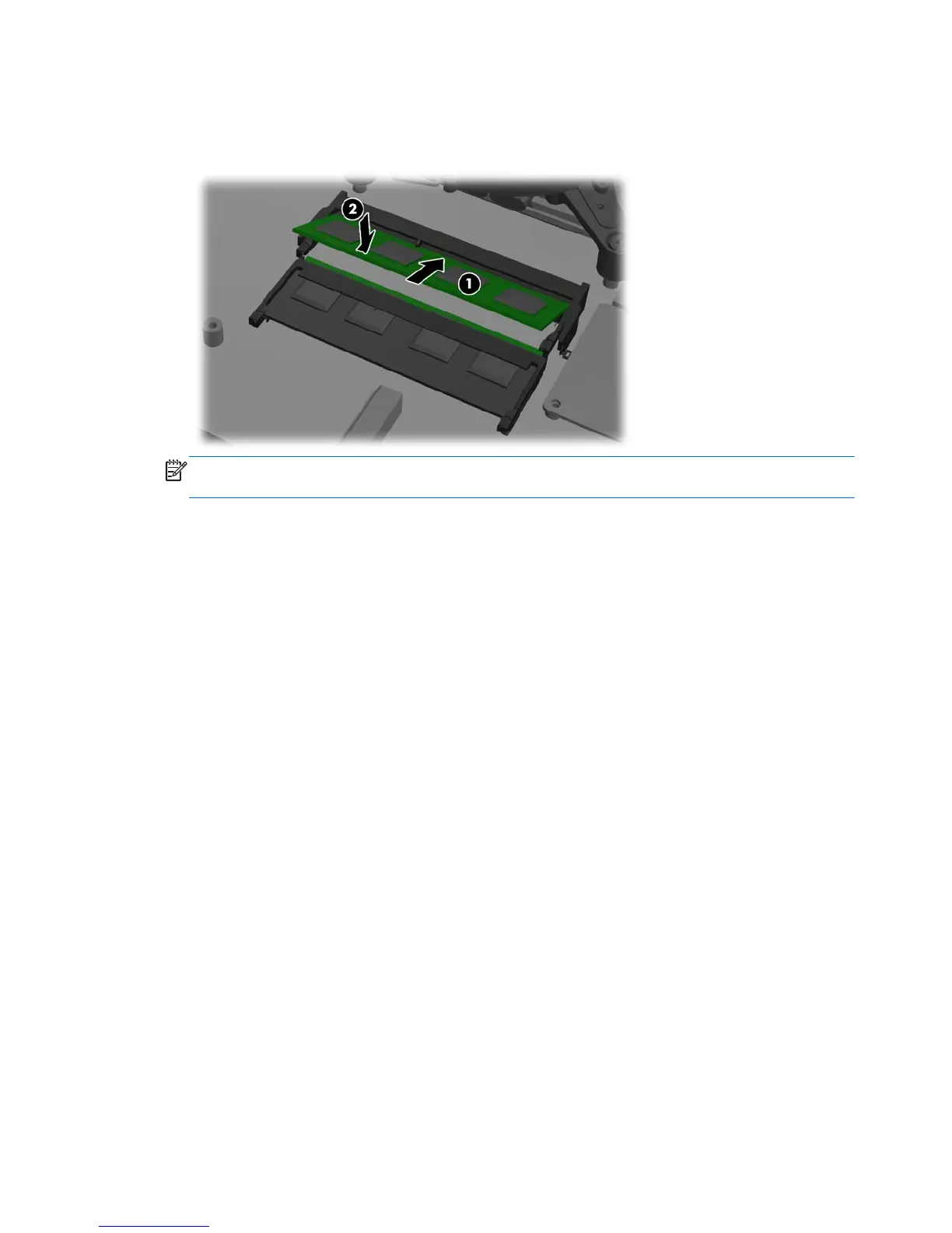 5. To install a memory module, slide the SODIMM into the socket at approximately a 30° angle (1),