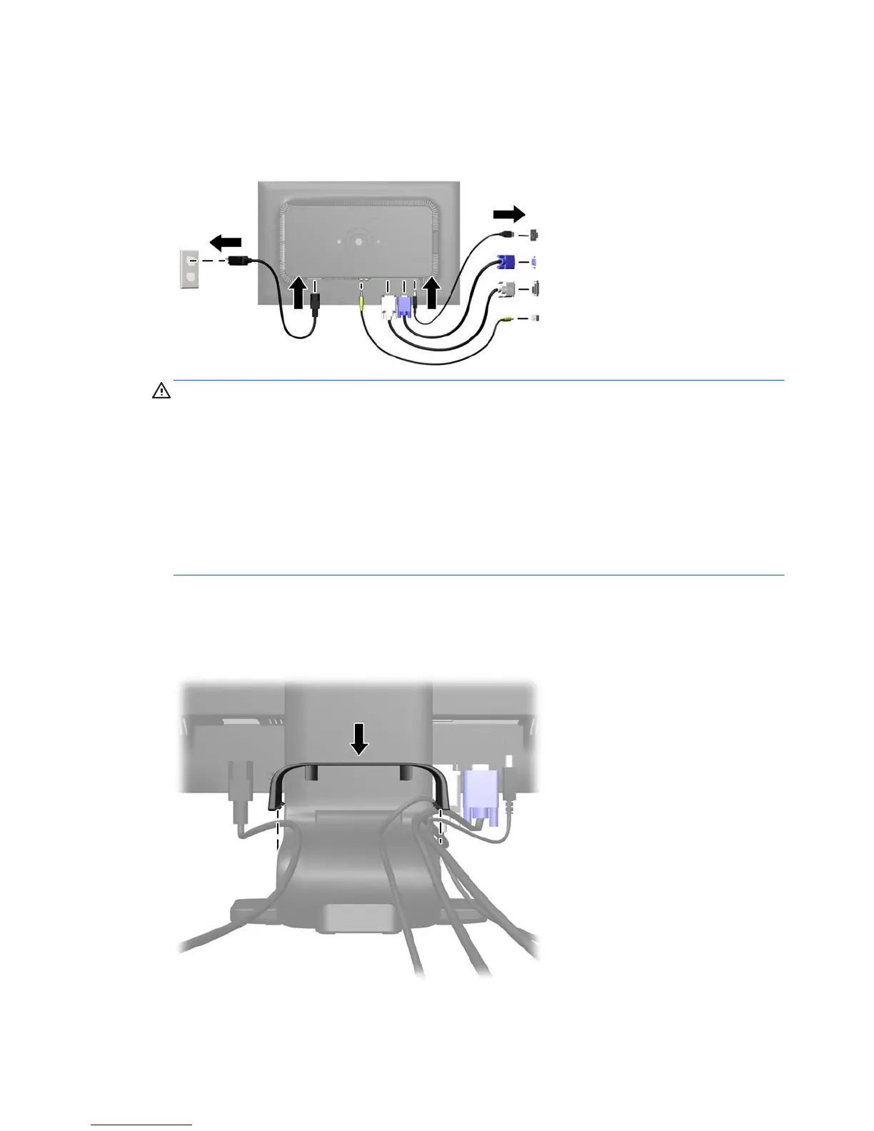 6. Connect one end of the power cord to the AC power connector on the back of the monitor, and