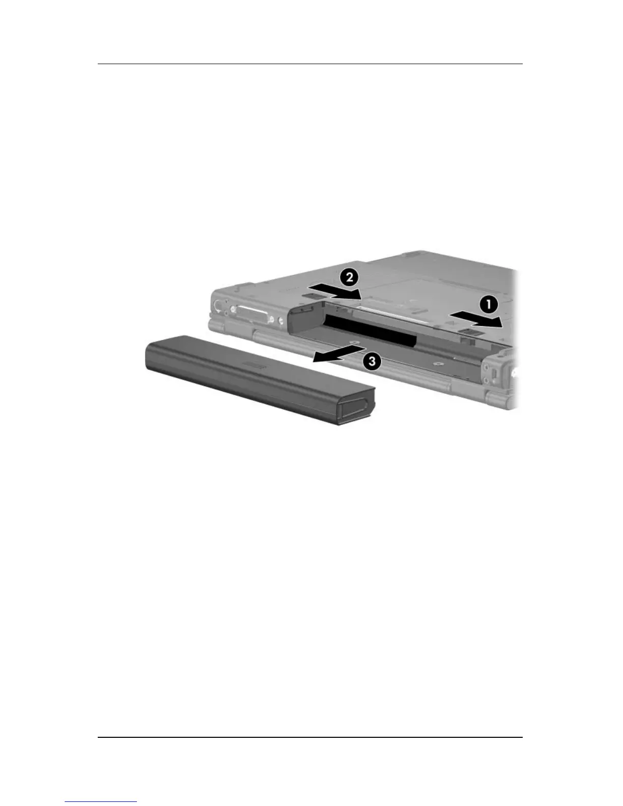 b. Slide and hold the battery pack lock latch 1 to the right.