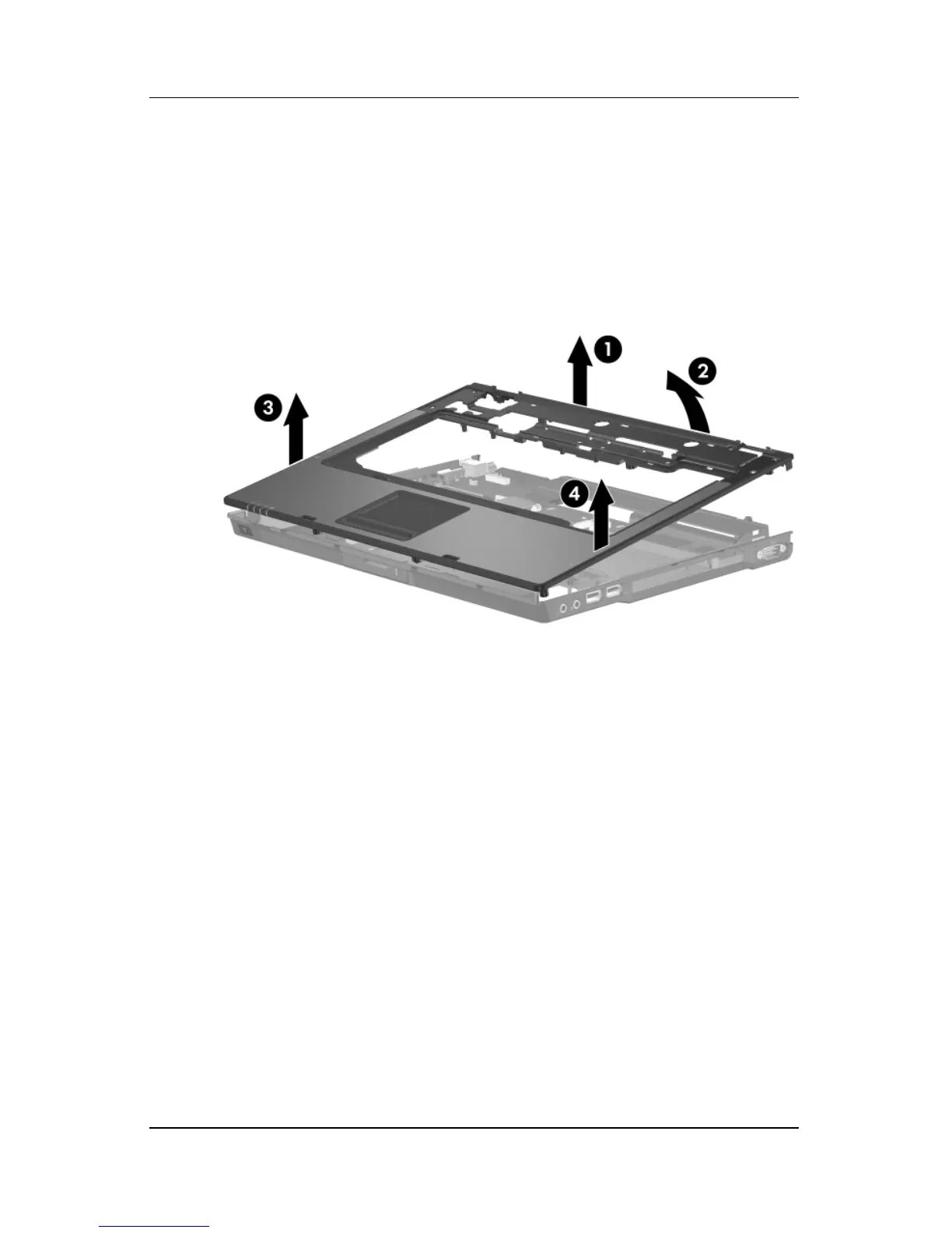 8. Lift up the rear edge of the top cover 1 until it disengages