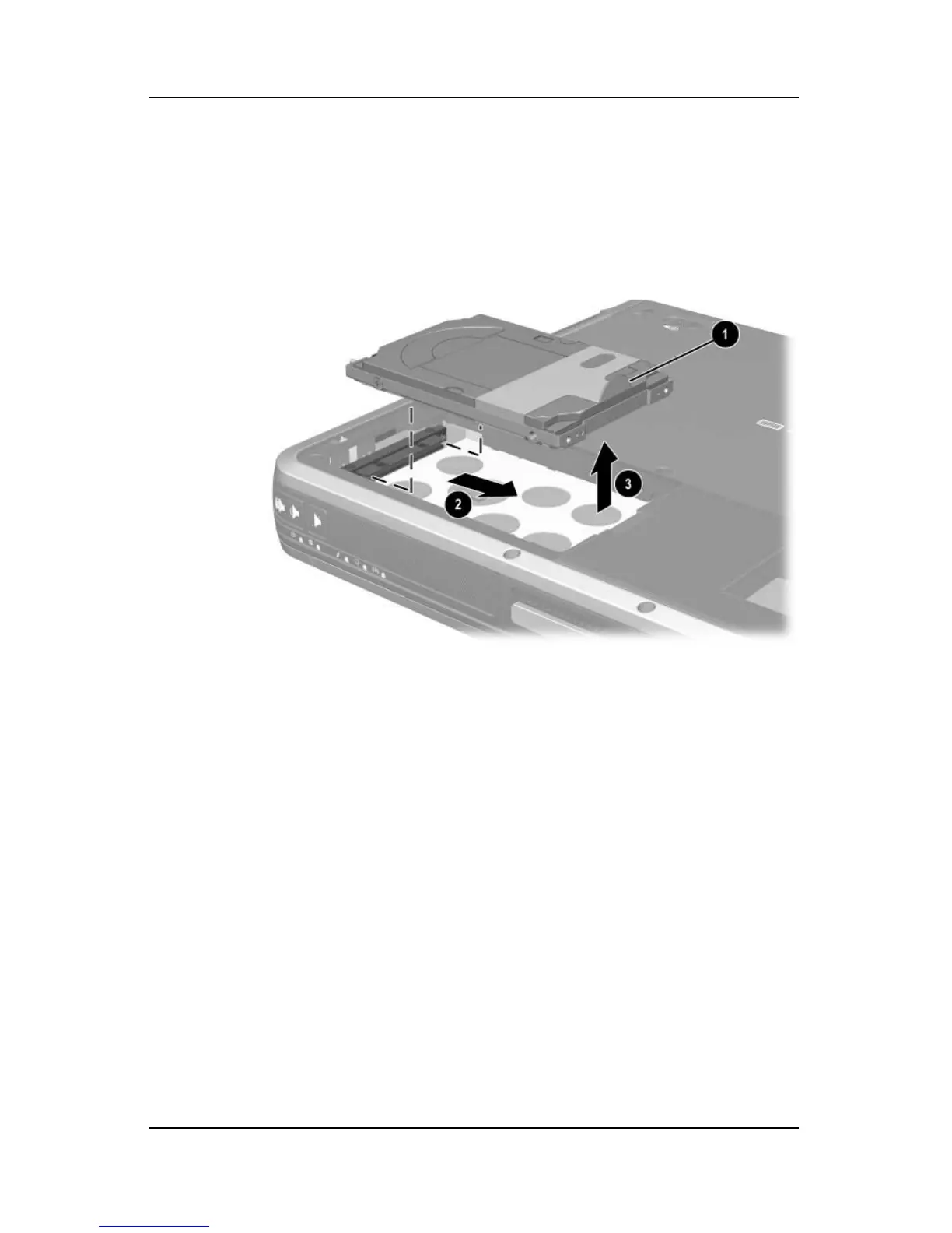 e. Use the Mylar tab 1 to slide the hard drive to the right 2
