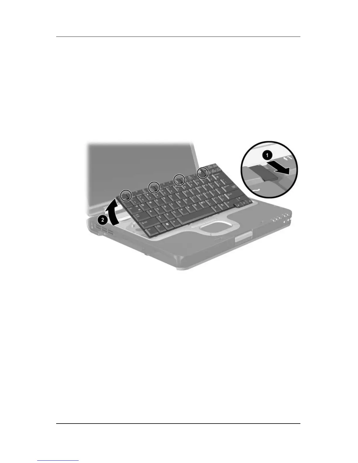 6. Slide the four tabs 1 on the top edge of the keyboard