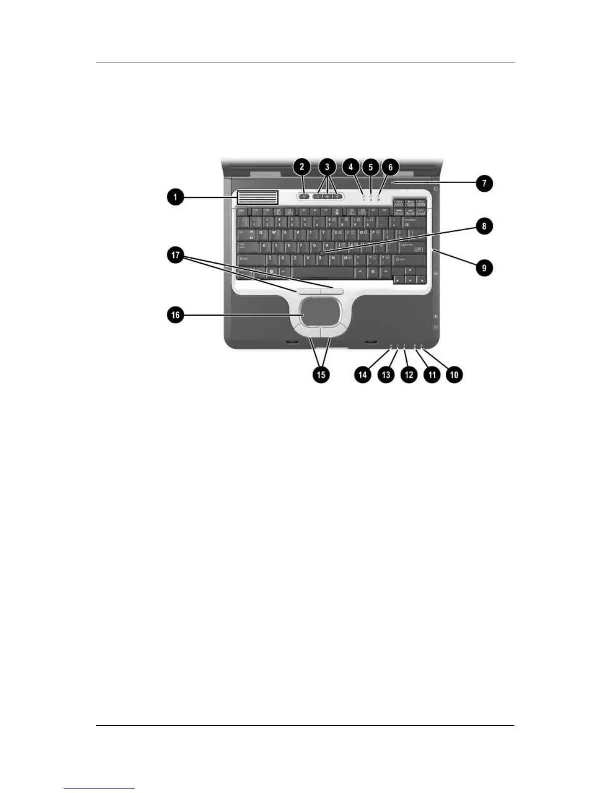 The notebook top components are shown below and described in