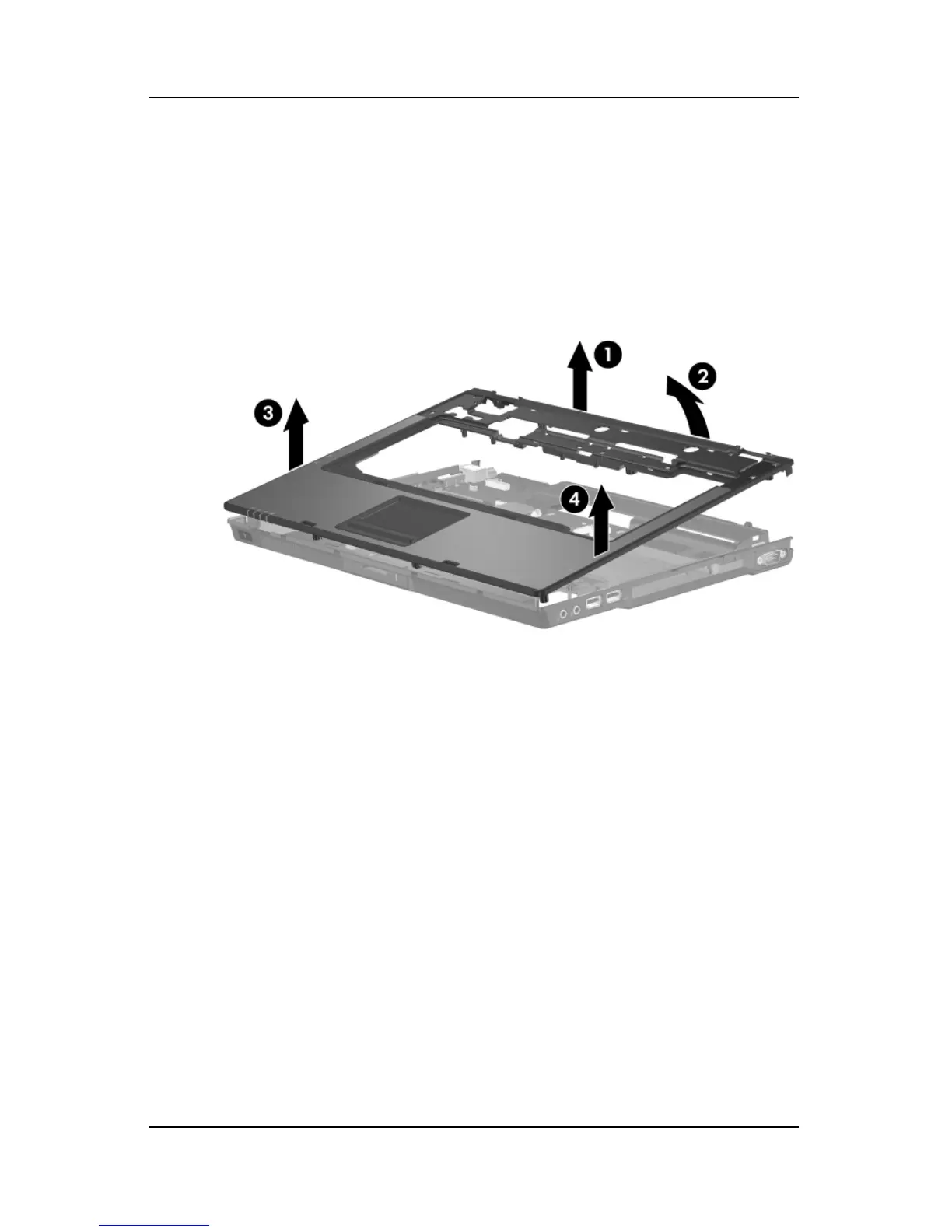 8. Lift up the rear edge of the top cover 1 until it disengages