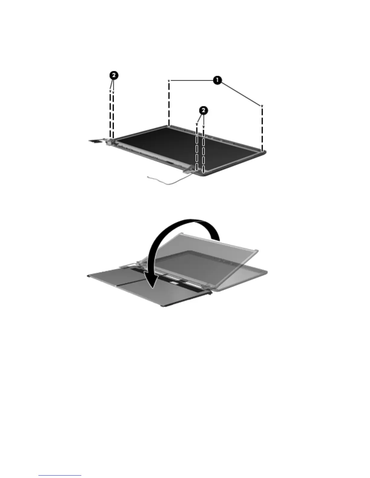 b. Lift the top edge of the display panel, and then swing it up and forward until it rests upside