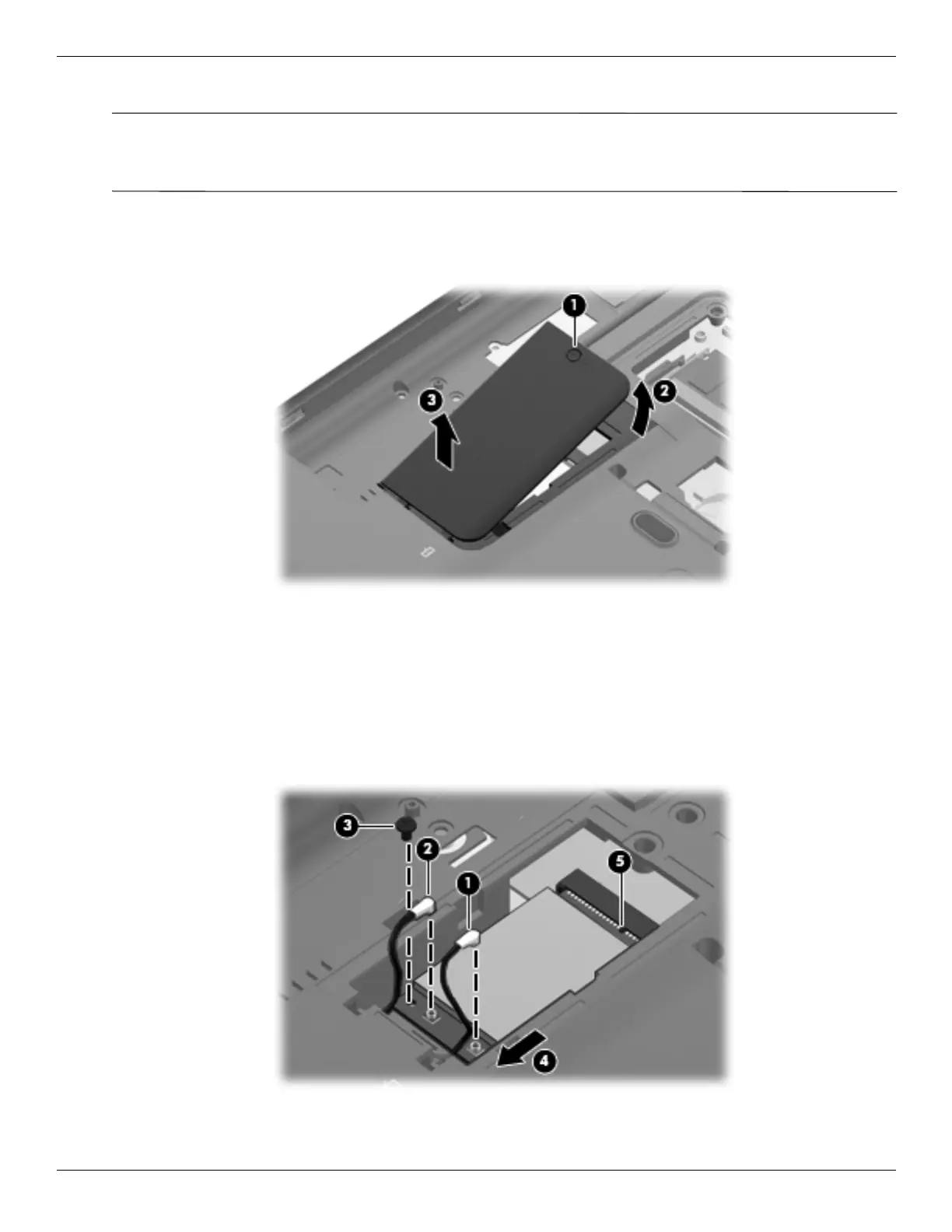 5. Remove the WLAN module 4 by pulling the module away from the slot at an angle.