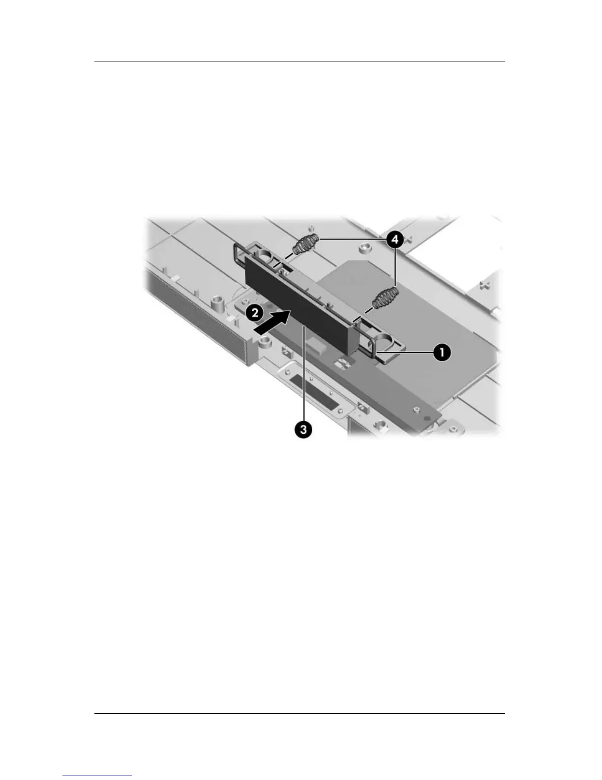 8. Remove the display release button 3 and springs 4 from