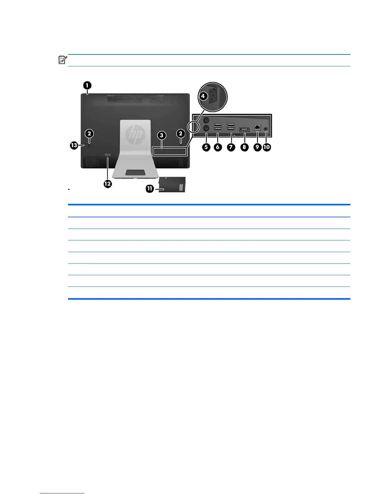 4 Power connector 11 Rear port cover