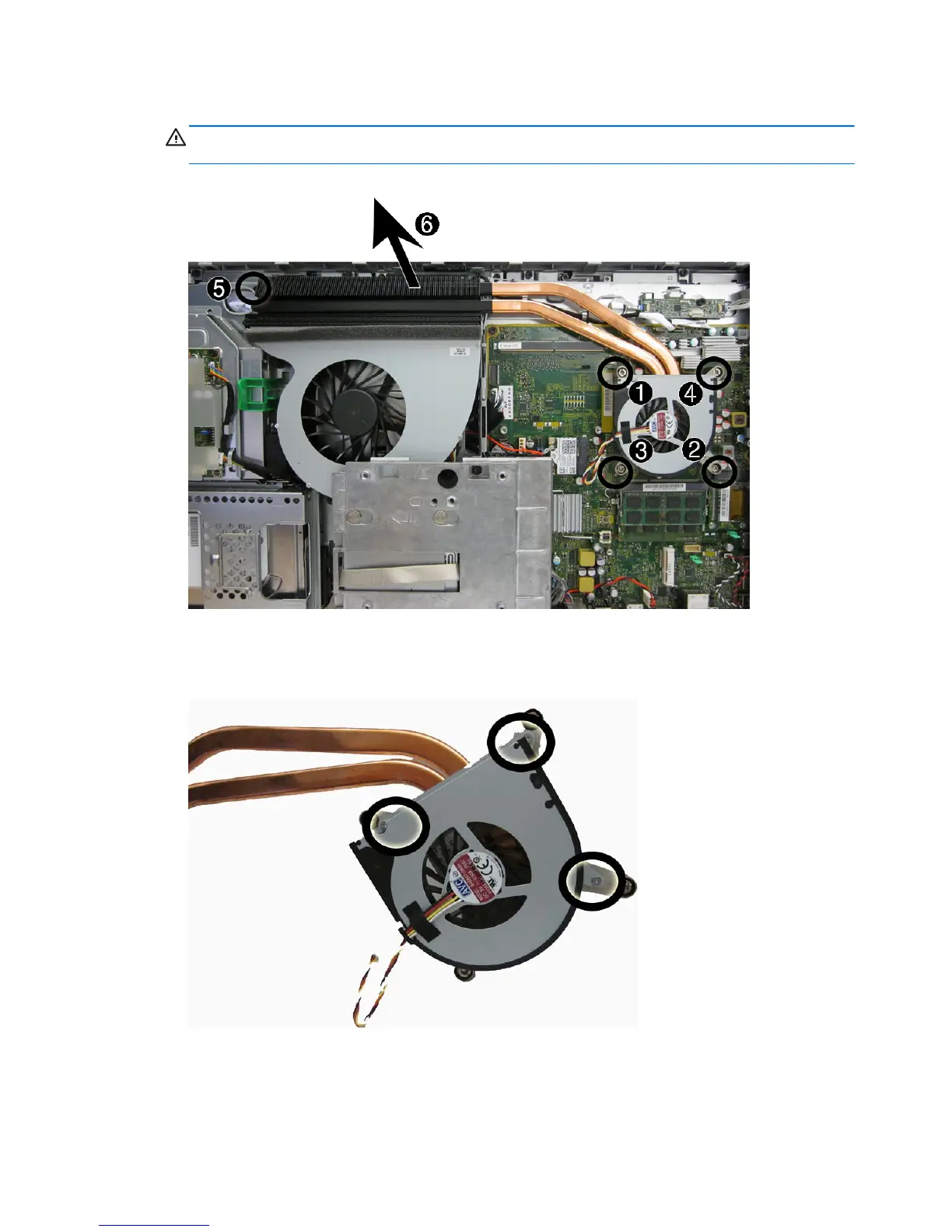 7. If you need to remove the fan from the heat sink, remove the three small Phillips screws that