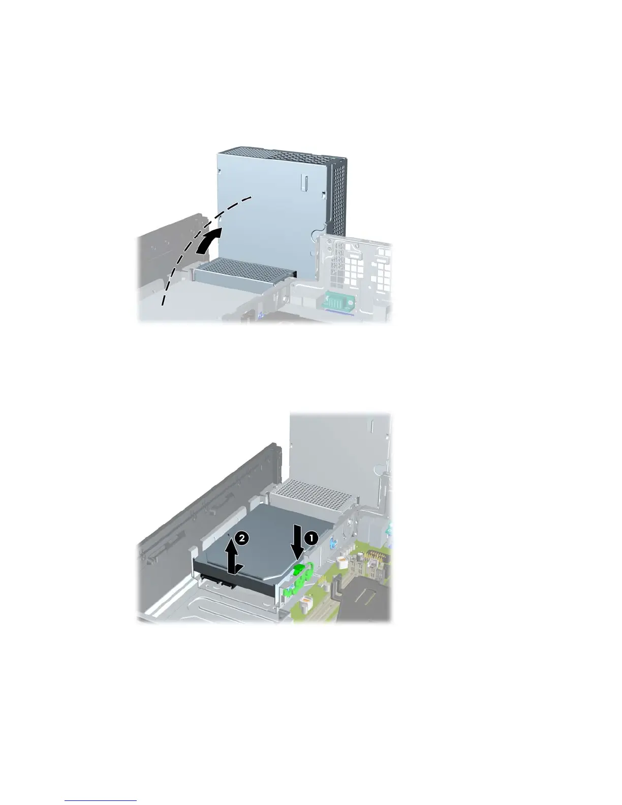 4. Rotate the power supply to its upright position. The hard drive is located beneath the power