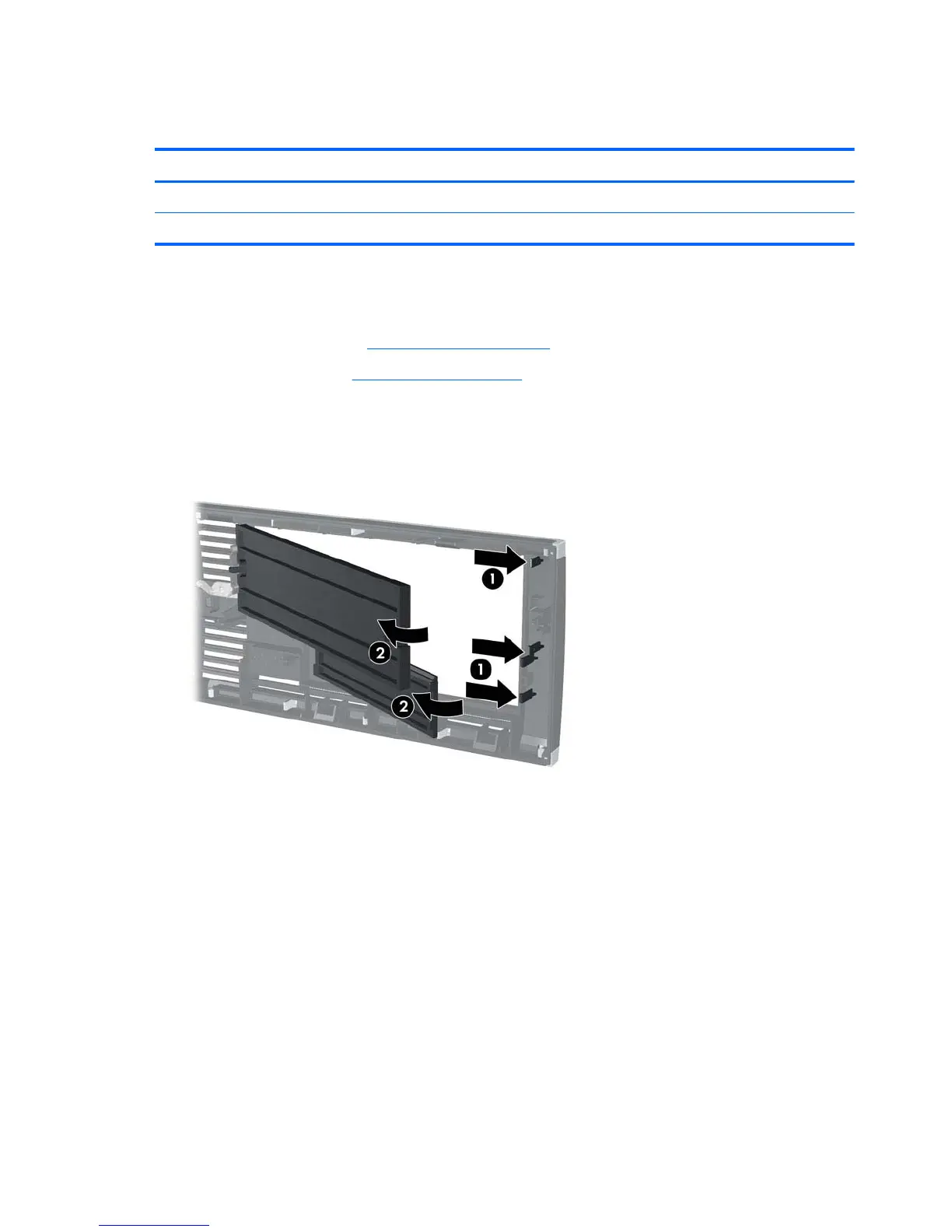 On some models, there are bezel blanks covering the 3.5-inch and 5.25-inch external drive bays that