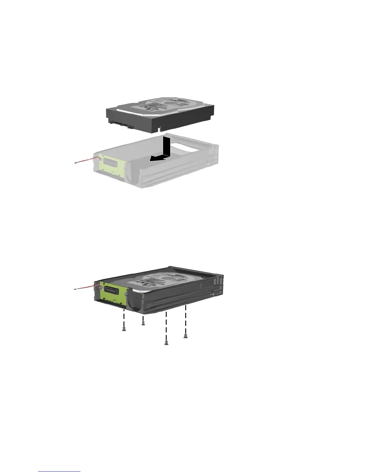 6. Place the new hard drive in the carrier then slide the hard drive back so that it seats in the SATA