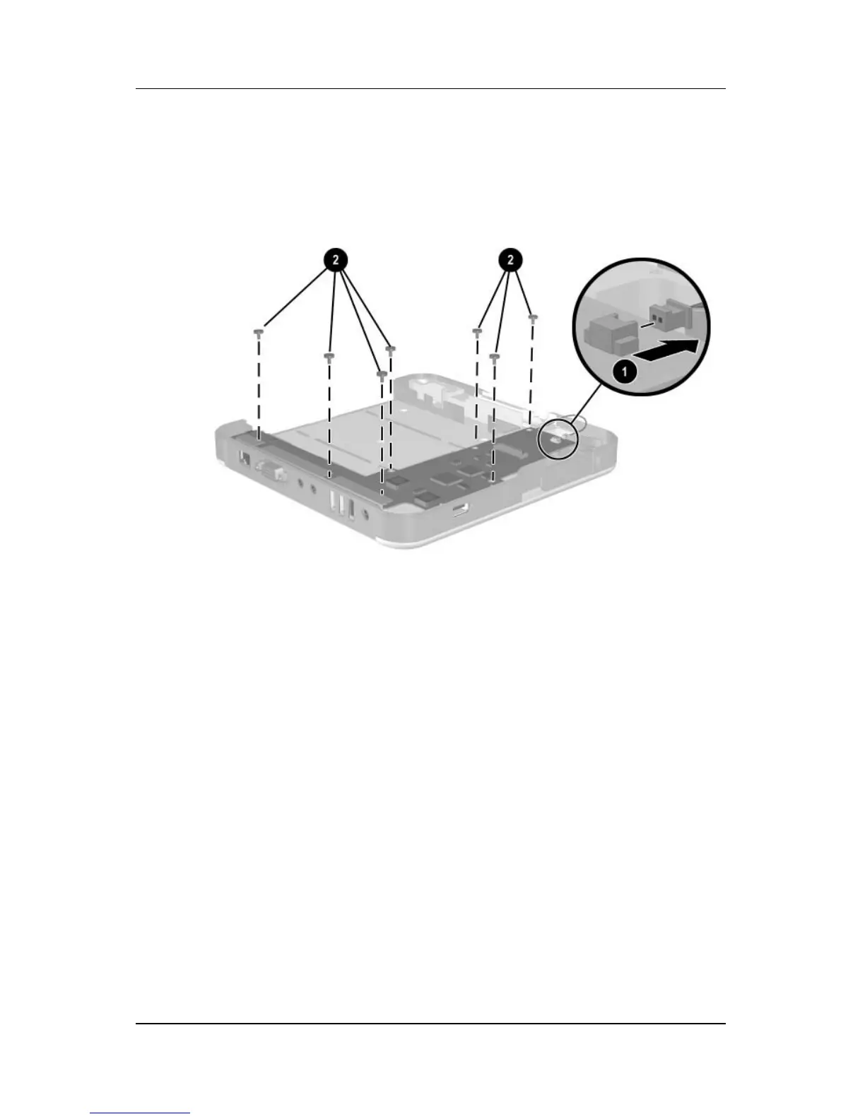 10. Disconnect the switch cable 1 from the board assembly.