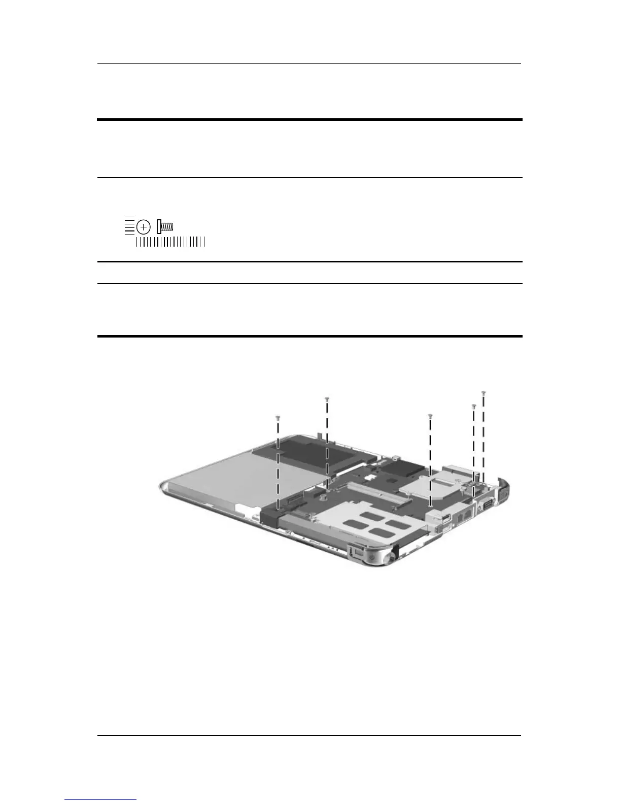 5 screws that secure the system board to the base enclosure (documented in