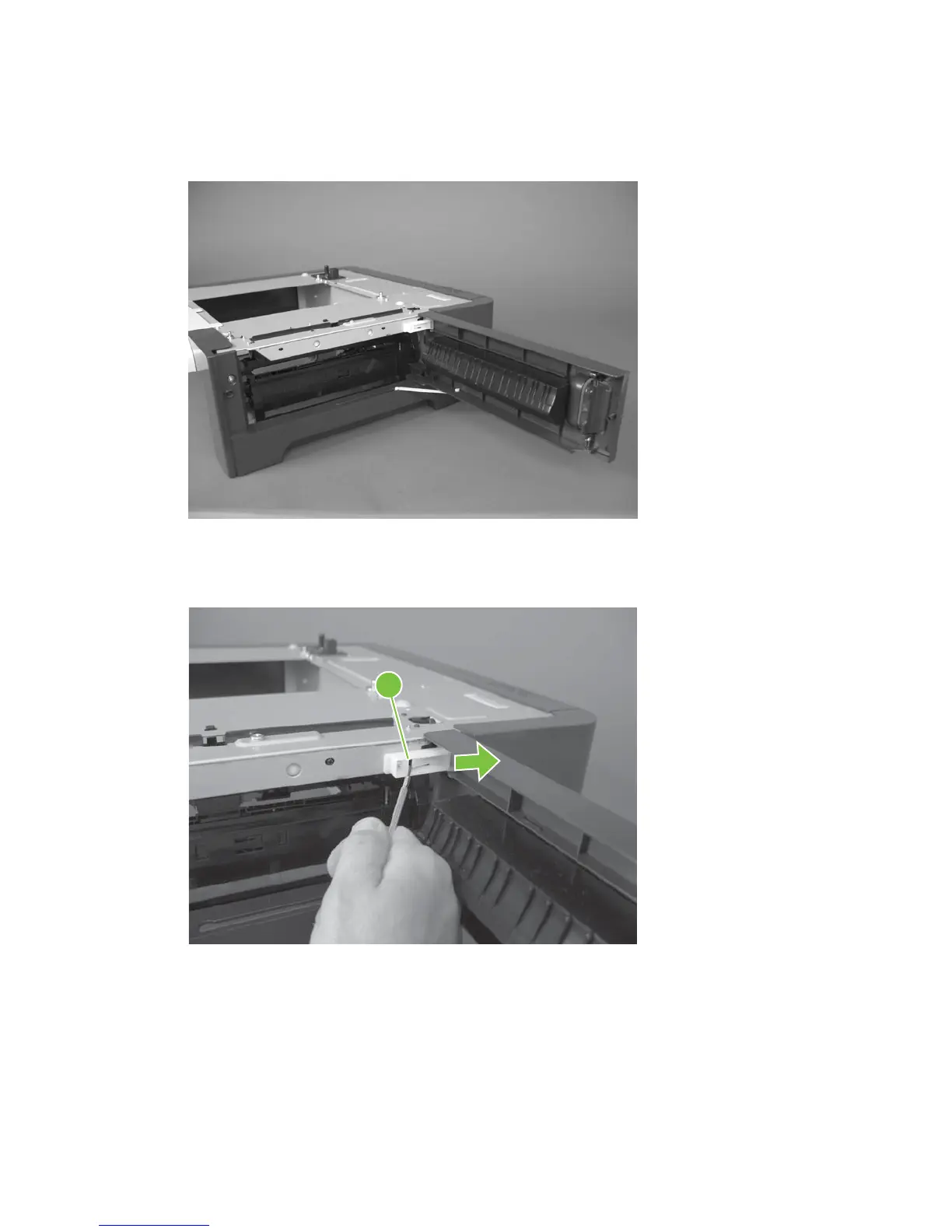 Figure 6-39 Remove the right door; optional paper feeder (2 of 3)
