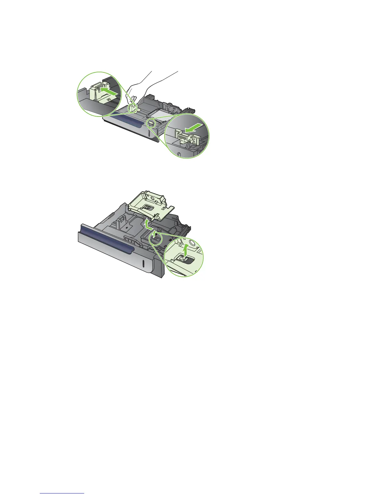 1. Adjust the paper-length and paper-width guides by squeezing the adjustment latches and adjusting