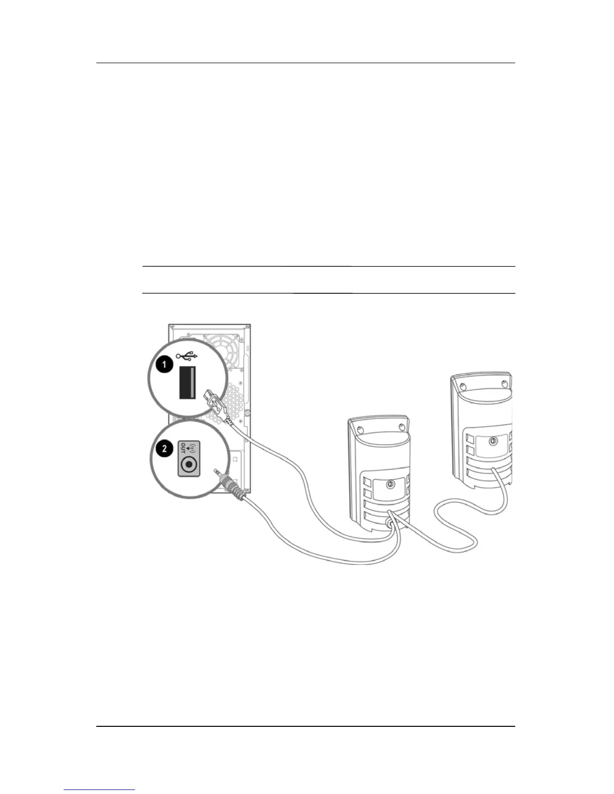 2. Plug the USB cable 1 on the control speaker into a USB port