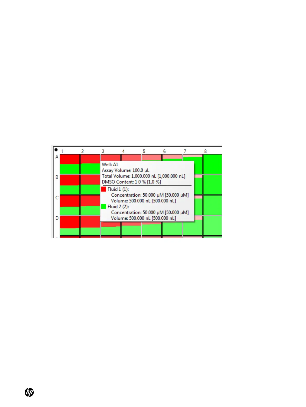 Figure 4-11 Example of a well pop-up that displays both requested and [dispensed] volumes and