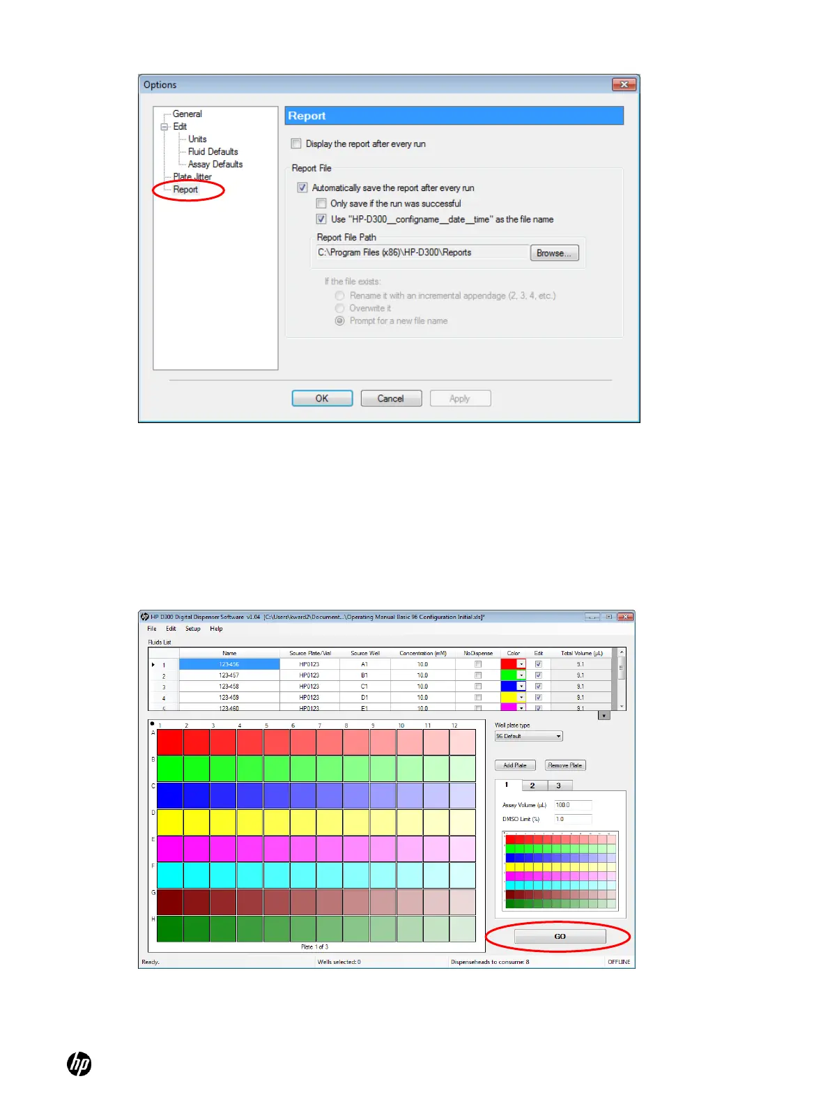 After selecting the desired plate configuration and verifying the options, click the GO button in the