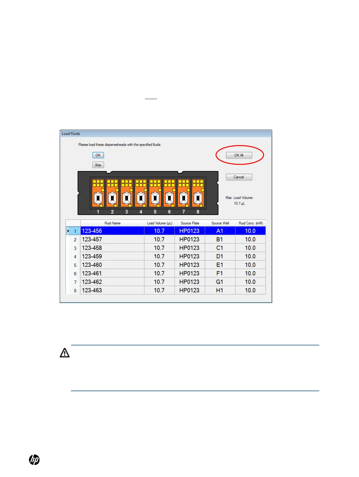 Figure 4-26 Load fluid dialog box showing OK All button