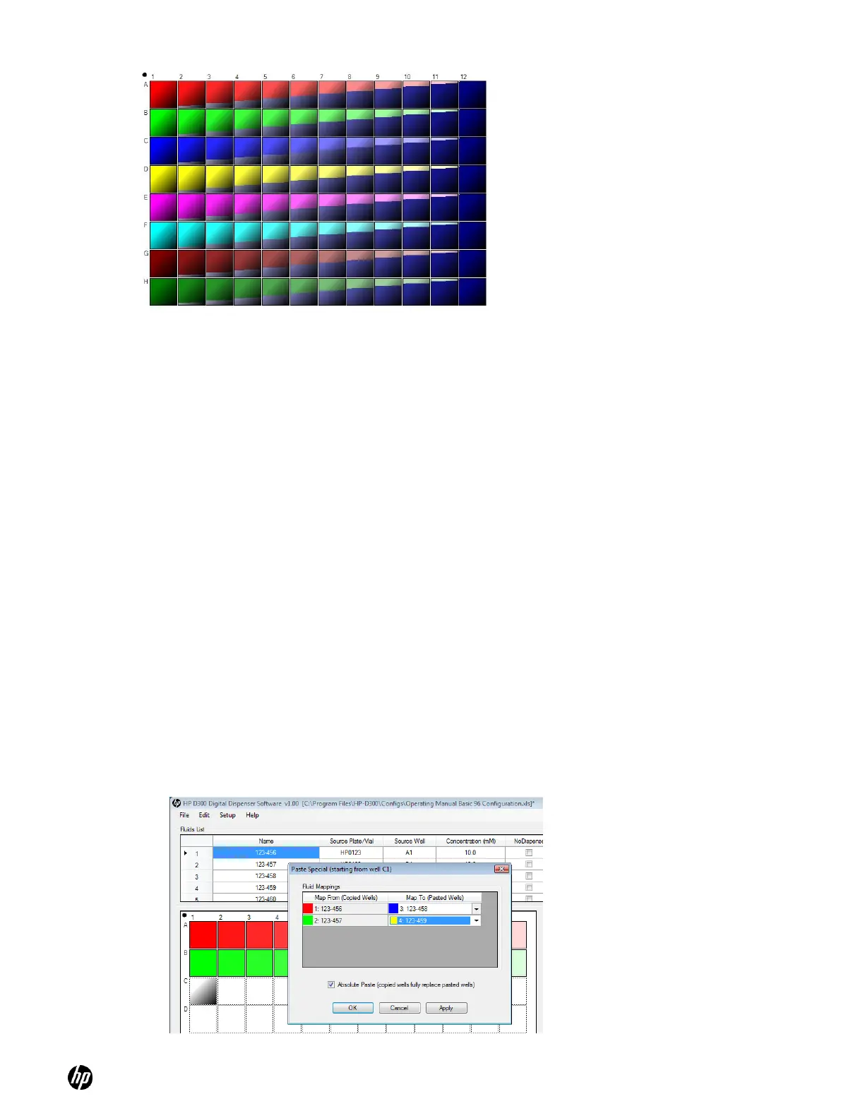 In the example shown below, wells A1 to B12 were copied, and fluid 1 will be mapped to fluid