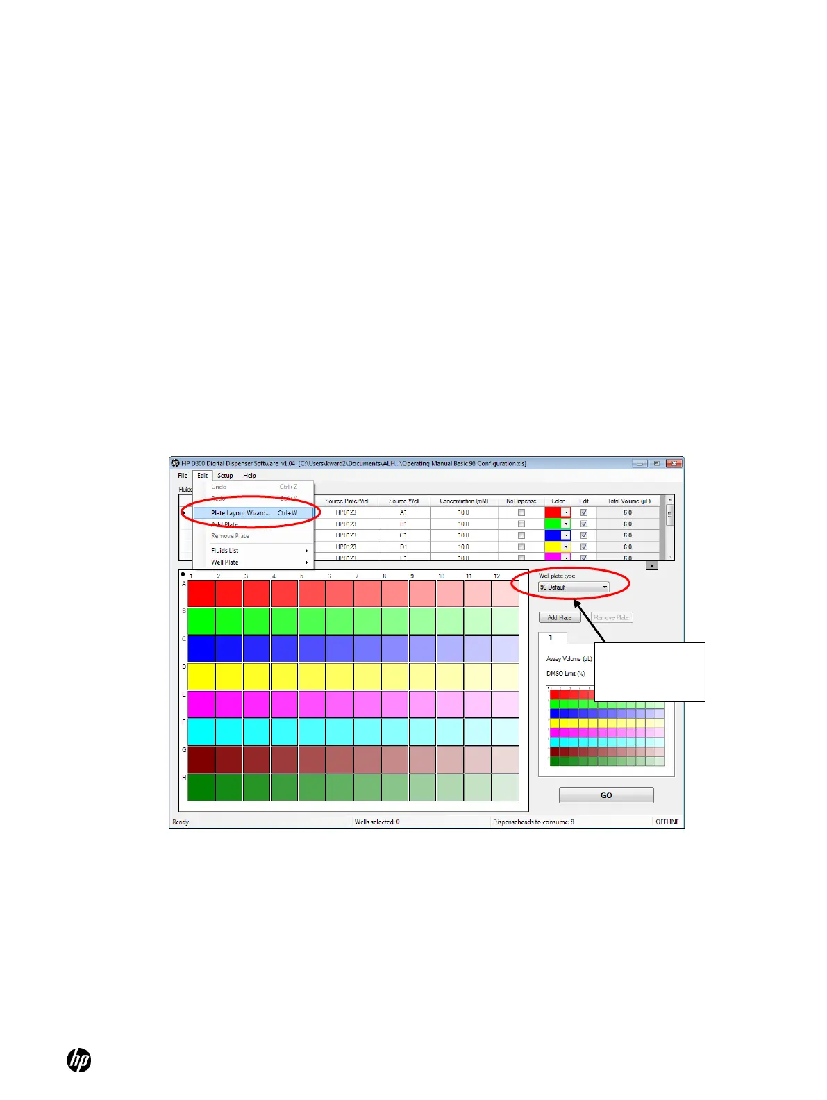 1. In the HP D300 Digital Dispenser main operating window, click Edit and then Plate Layout