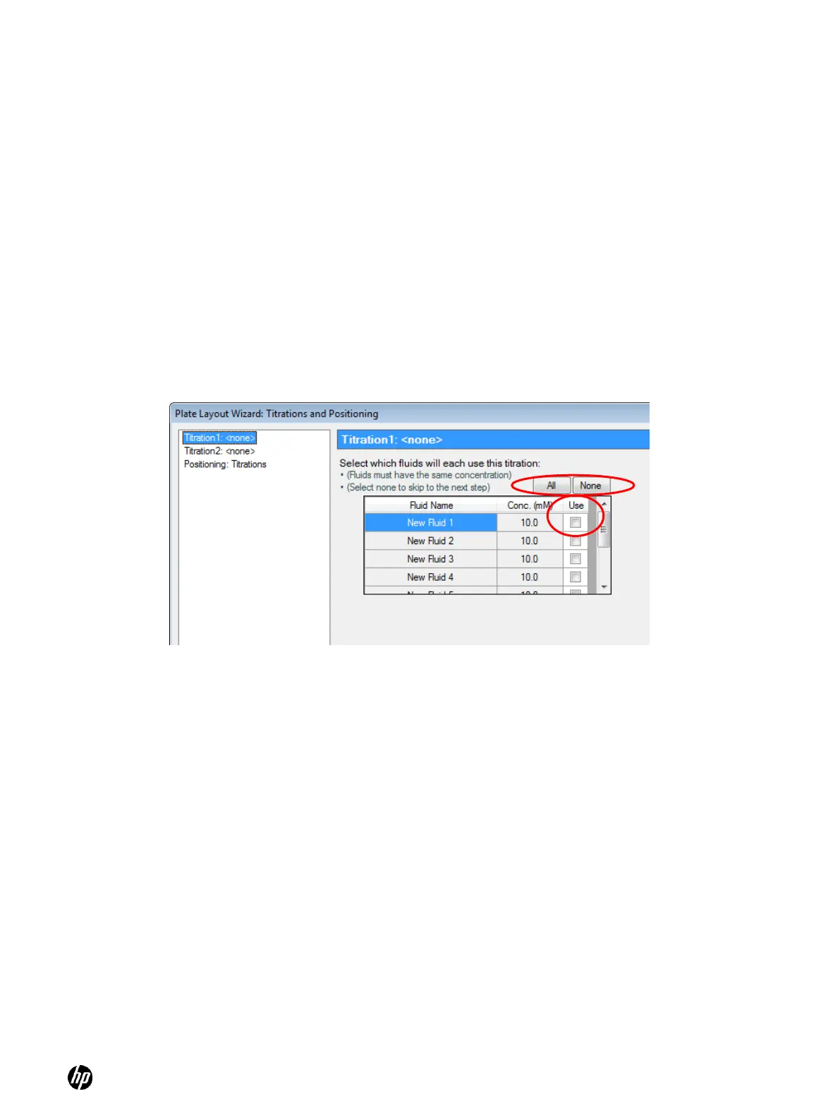 b. Select the Use check box next to each fluid that will use this titration to create a titration1
