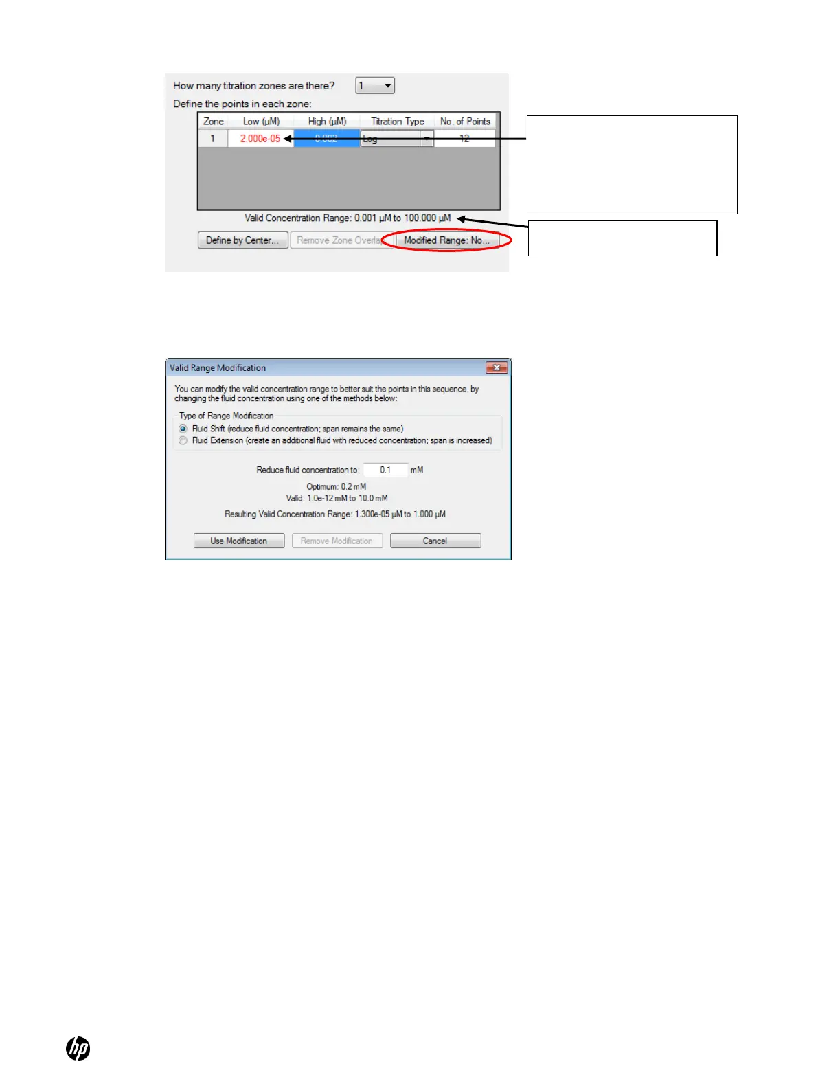 column to the upper limit specified by the Valid Concentration Range display in the dialog box